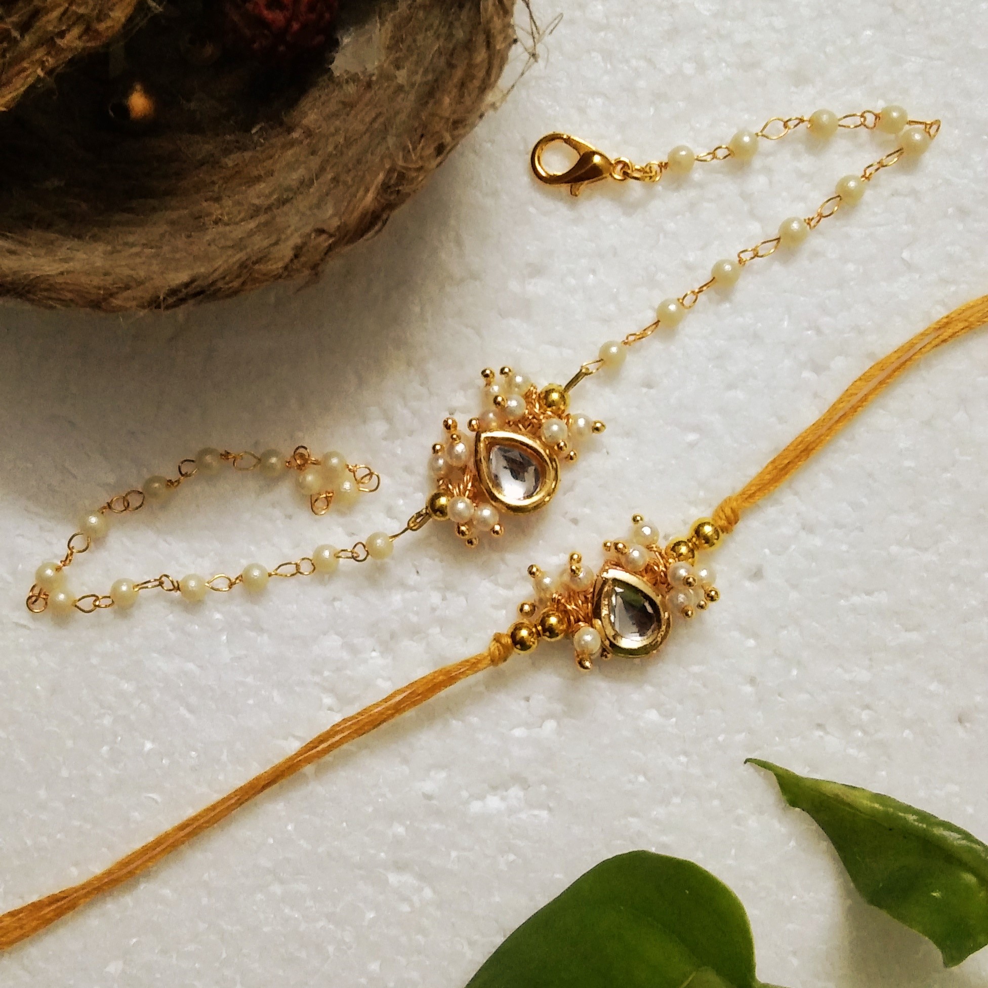 Celebrate Raksha Bandhan with a unique rakhi crafted from kundan/acrylic beads.