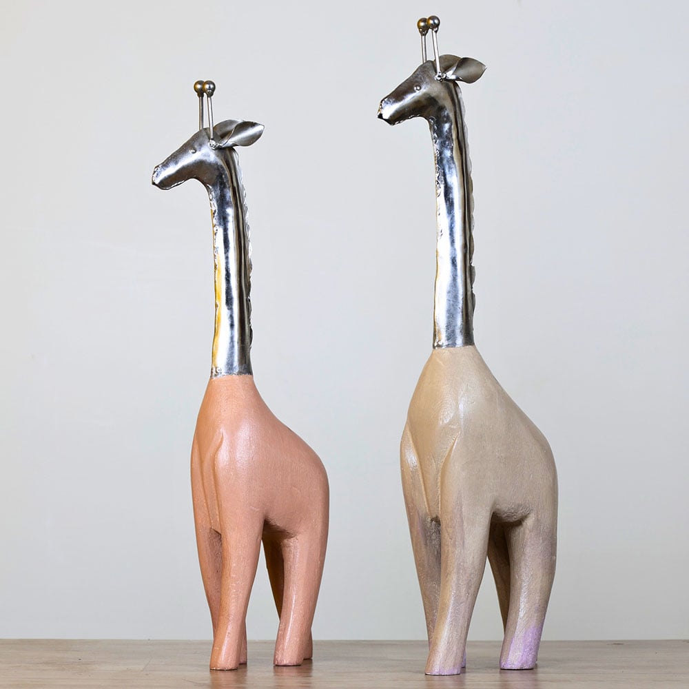 Minimalist yet soulful, this giraffe duo pairs slender wooden bodies with hand-shaped metal necks and heads. They capture the grace of savannah wildlife and the raw artistry of handcrafting, giving you conversation-starting accents that breathe life into rustic and boho arrangements.