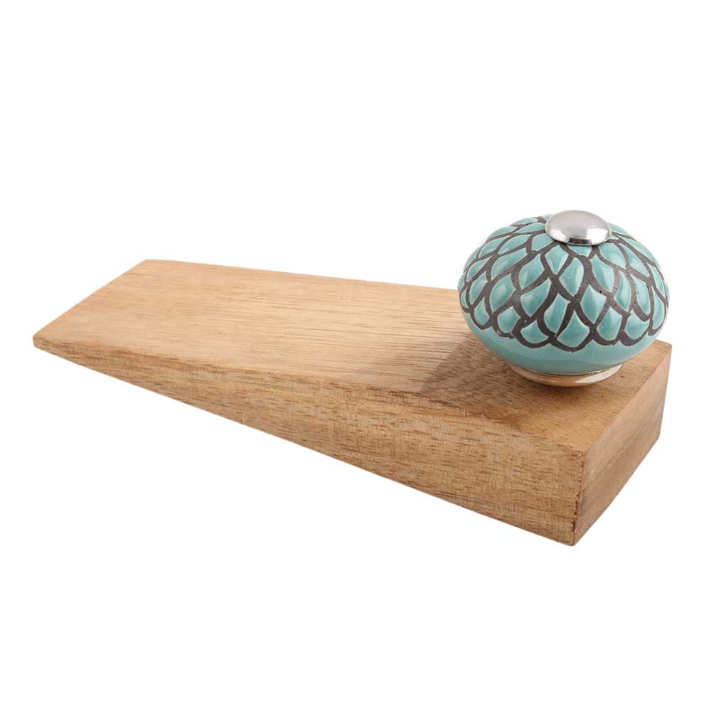 Built with high-quality ceramic and wood, the Sage Green and Black Etched Ceramic Wooden Door Stopper is designed for durability. The ceramic top is resistant to wear, while the solid wooden base ensures that the stopper stays securely in place. Whether used to hold a door open or to prevent door damage, this stopper provides reliable functionality without compromising on style.
