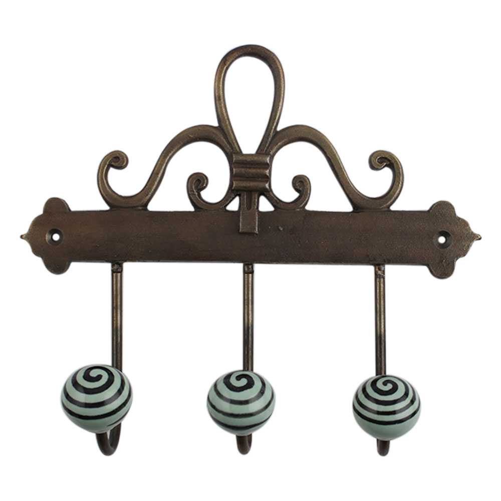 Sage Green Black Strip Ceramic Iron Hook. A Perfect Complement to the Soft Tone of the Wood are these White Traditional Hat & Coat Hook Made of Genuine Porcelain and Brass. It can be use to Hang Jewellery, Leashes, Towels, Scarves, Light Weight Sweaters, Caps Etc.
