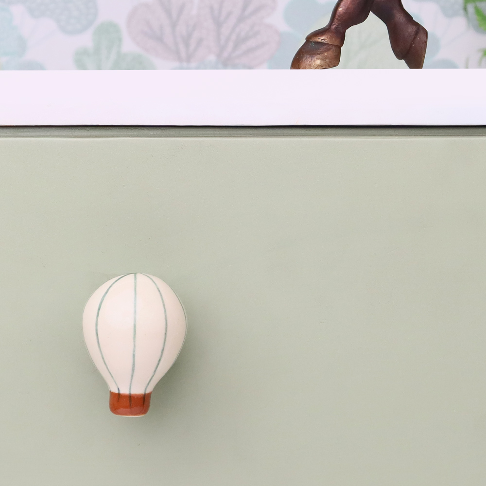 • Sage Green Ceramic Hot Air Balloon Modern Kids Drawer Knob