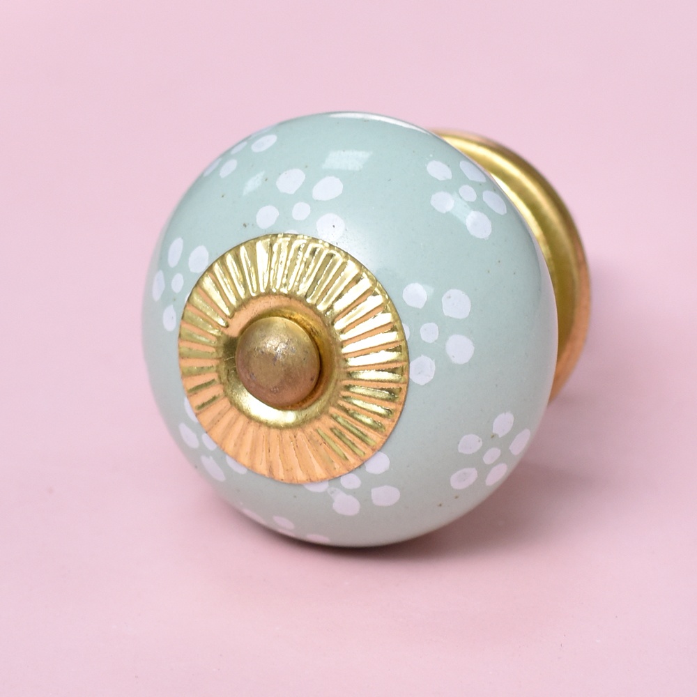 Sage Green Dotted Ceramic Cabinet Knob Online