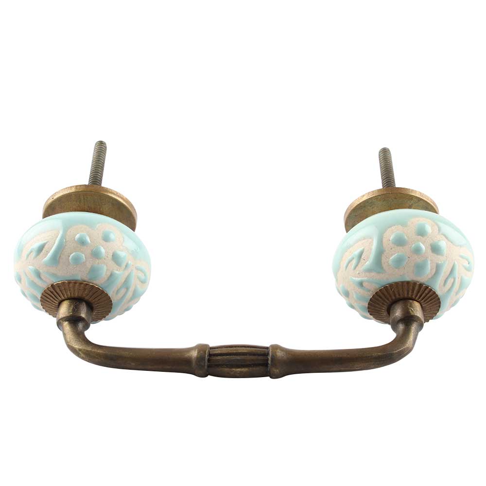 Sage Green Etched Ceramic Bridge Handle. Ideal for Drawer, Dresser, Cabinet, Wardrobe, Cupboard and Almirah etc.