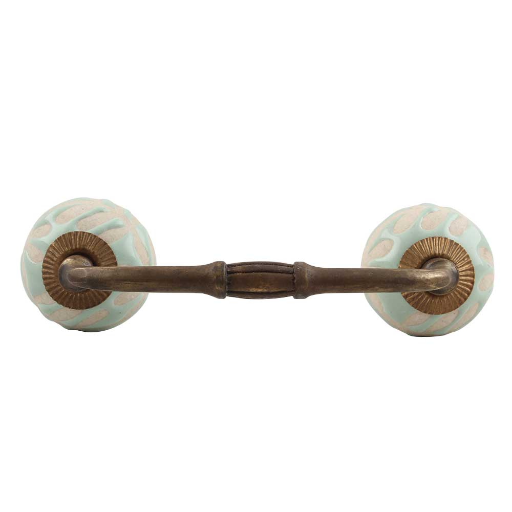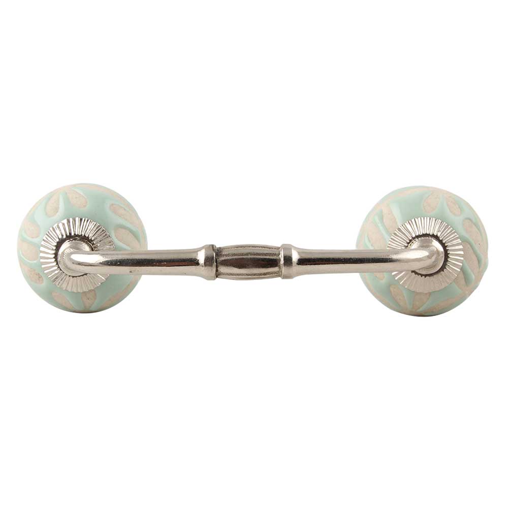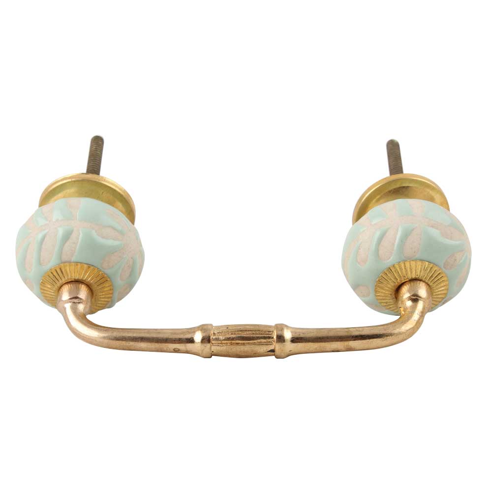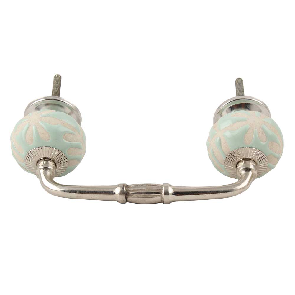 Sage Green Etched Ceramic Floral Bridge Handle. Ideal for Drawer, Dresser, Cabinet, Wardrobe, Cupboard and Almirah etc.