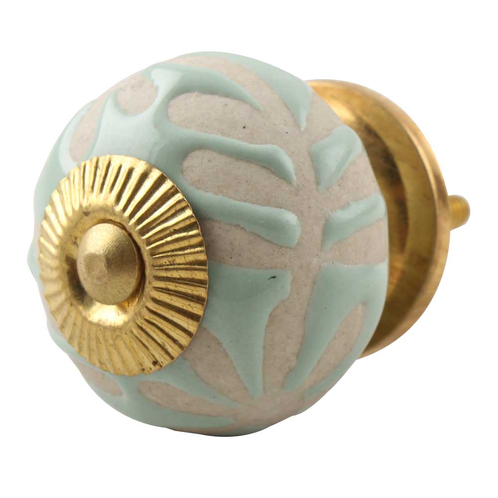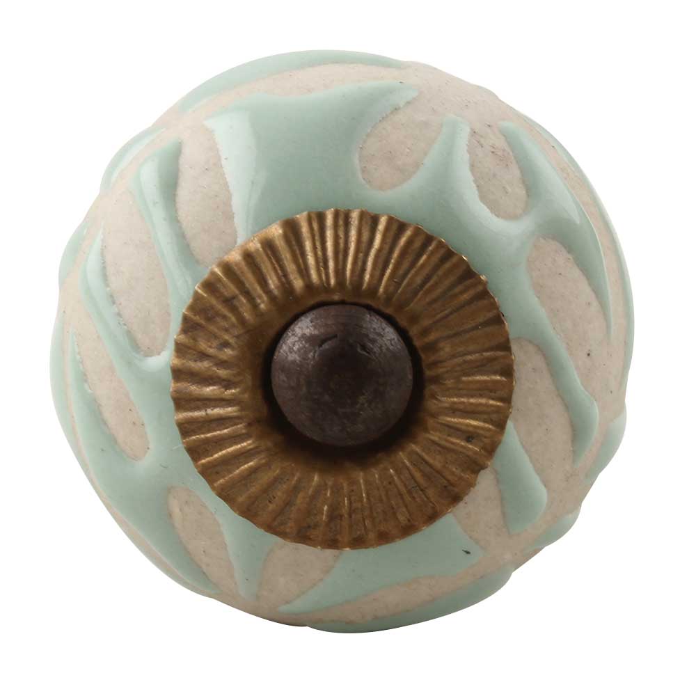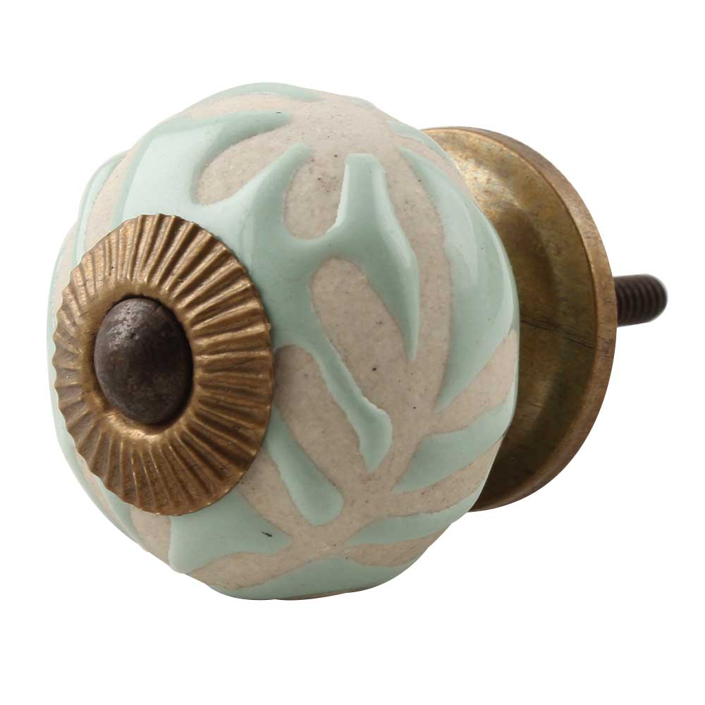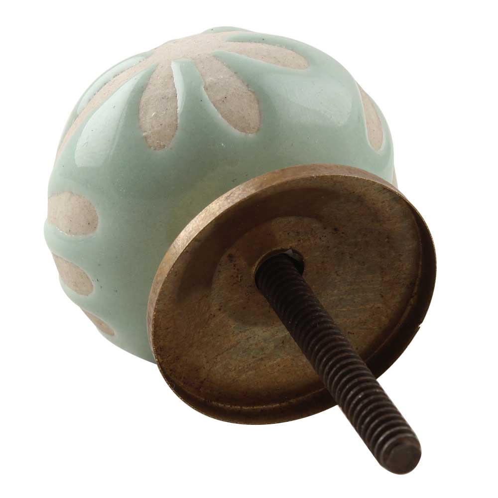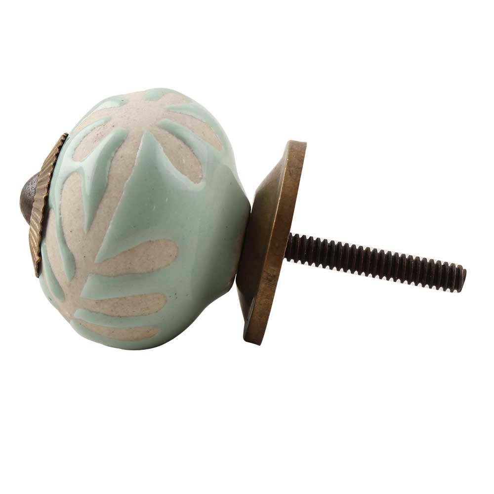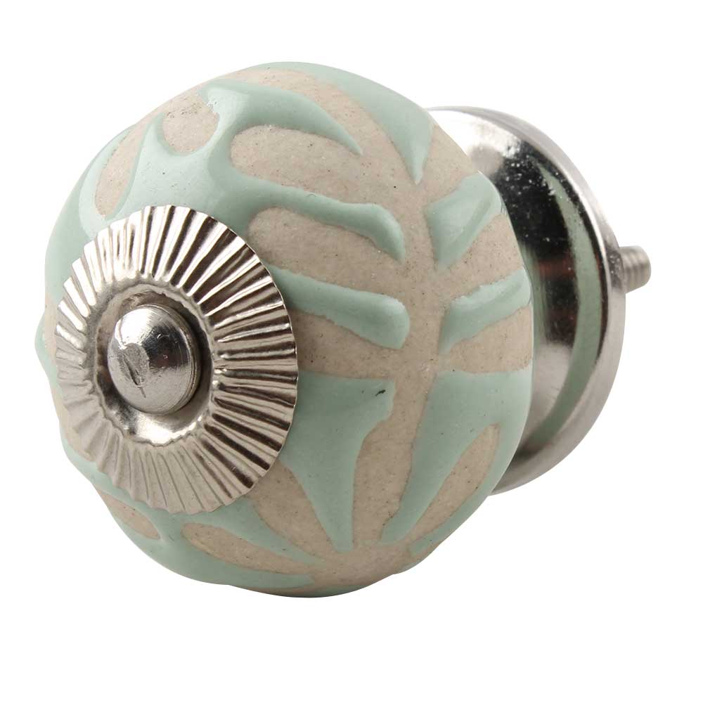 Sage Green Etched Ceramic Floral Cabinet Knob Online