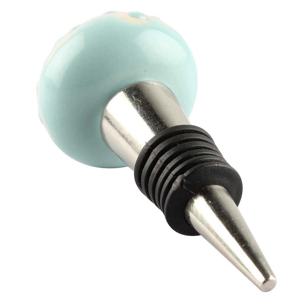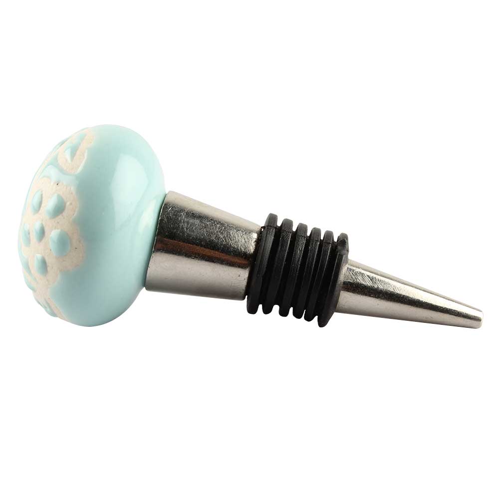 Sage Green Etched Ceramic Wine Stopper. Zinc Alloy Wine Bottle Stopper with Attractive Jute Bag Packaging.