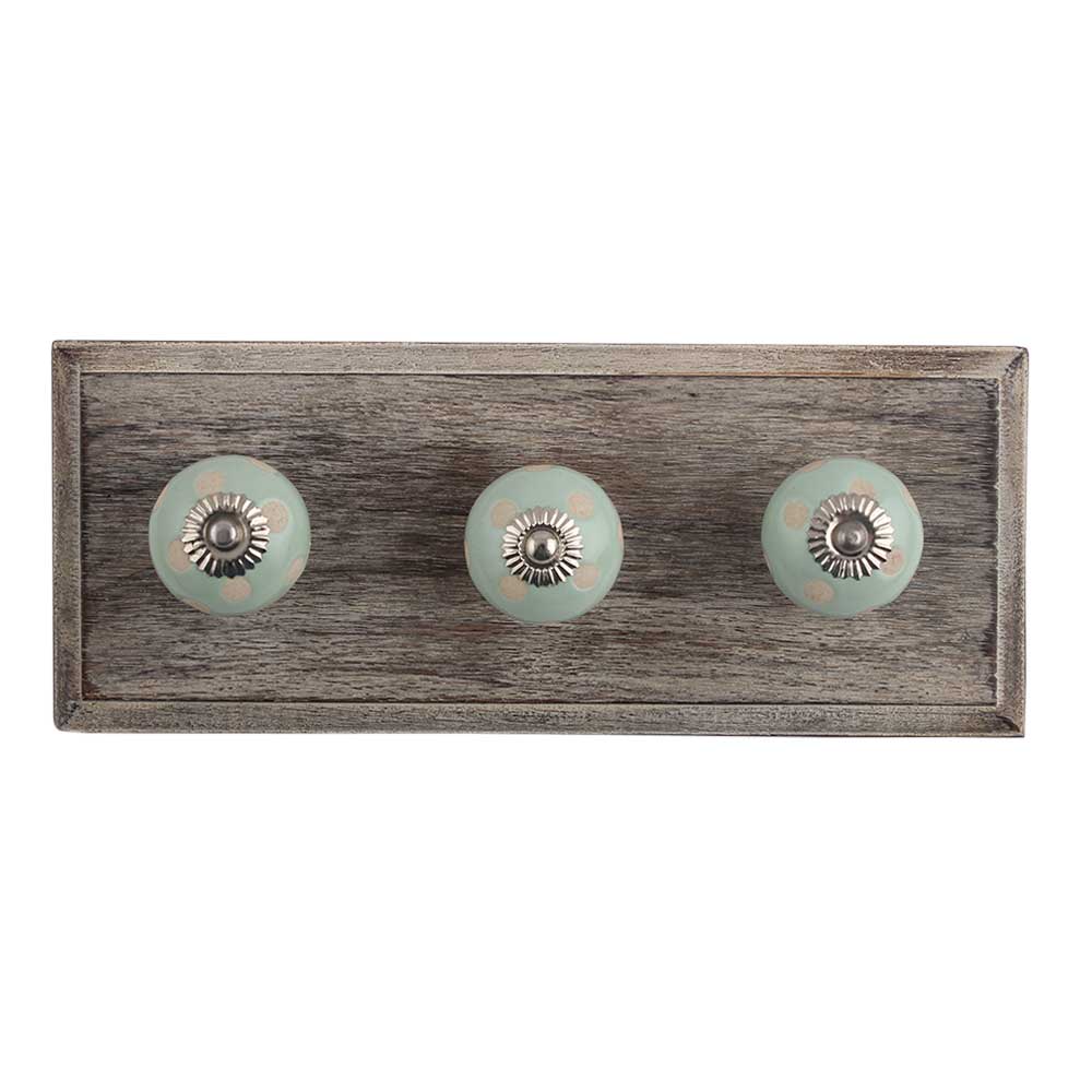 Sage Green Etched Dot Ceramic Wooden Hooks