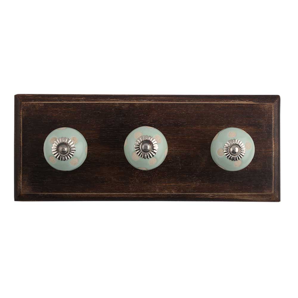 Sage Green Etched Dot Ceramic Wooden Hooks