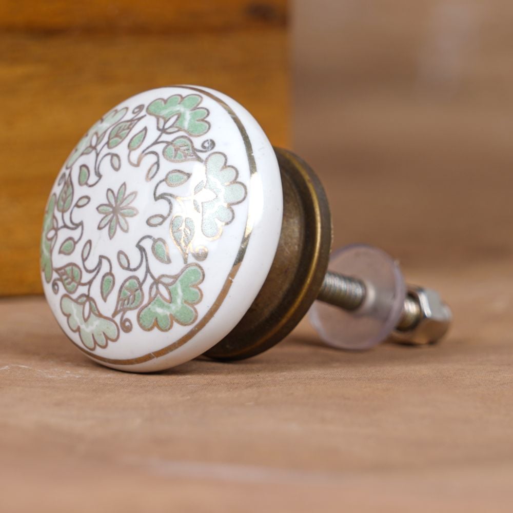 These knobs are perfect for anyone wanting to refresh their furniture with a stylish, subtle design. The combination of sage green and golden floral details complements a wide range of décor styles, from contemporary to traditional.