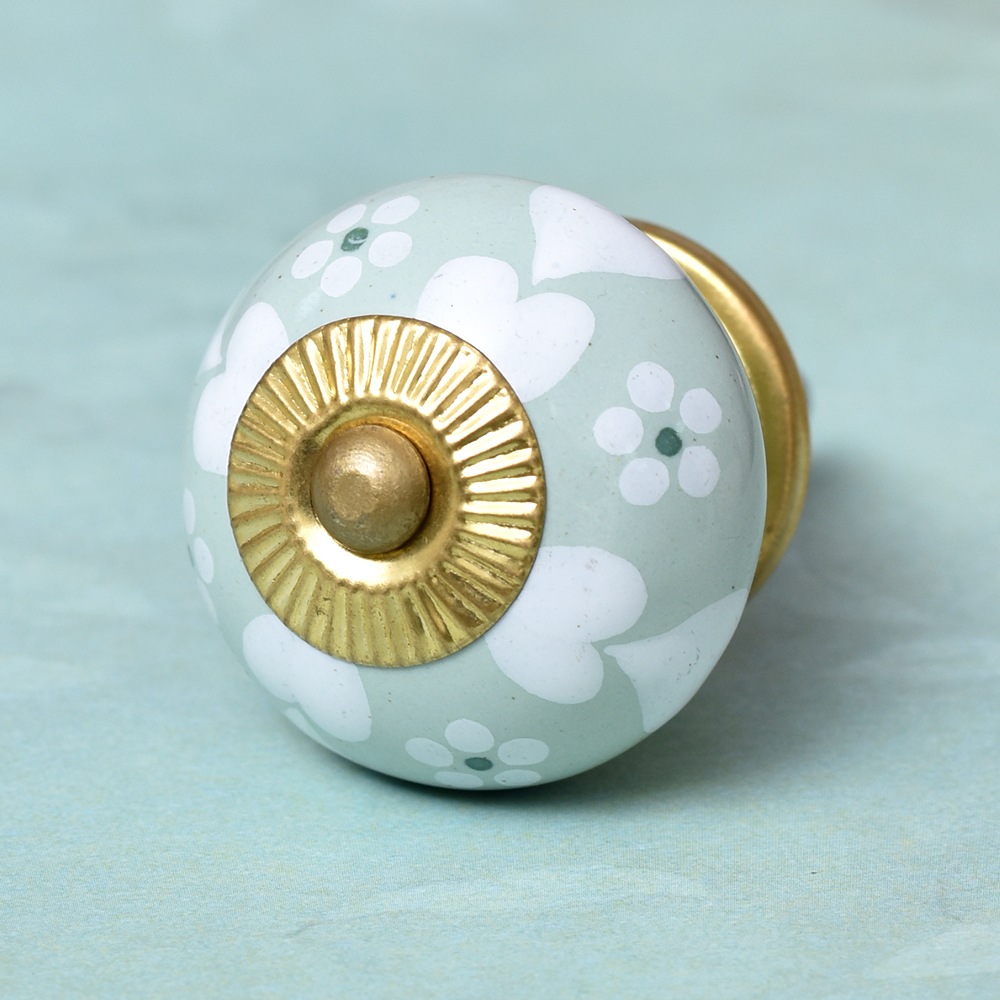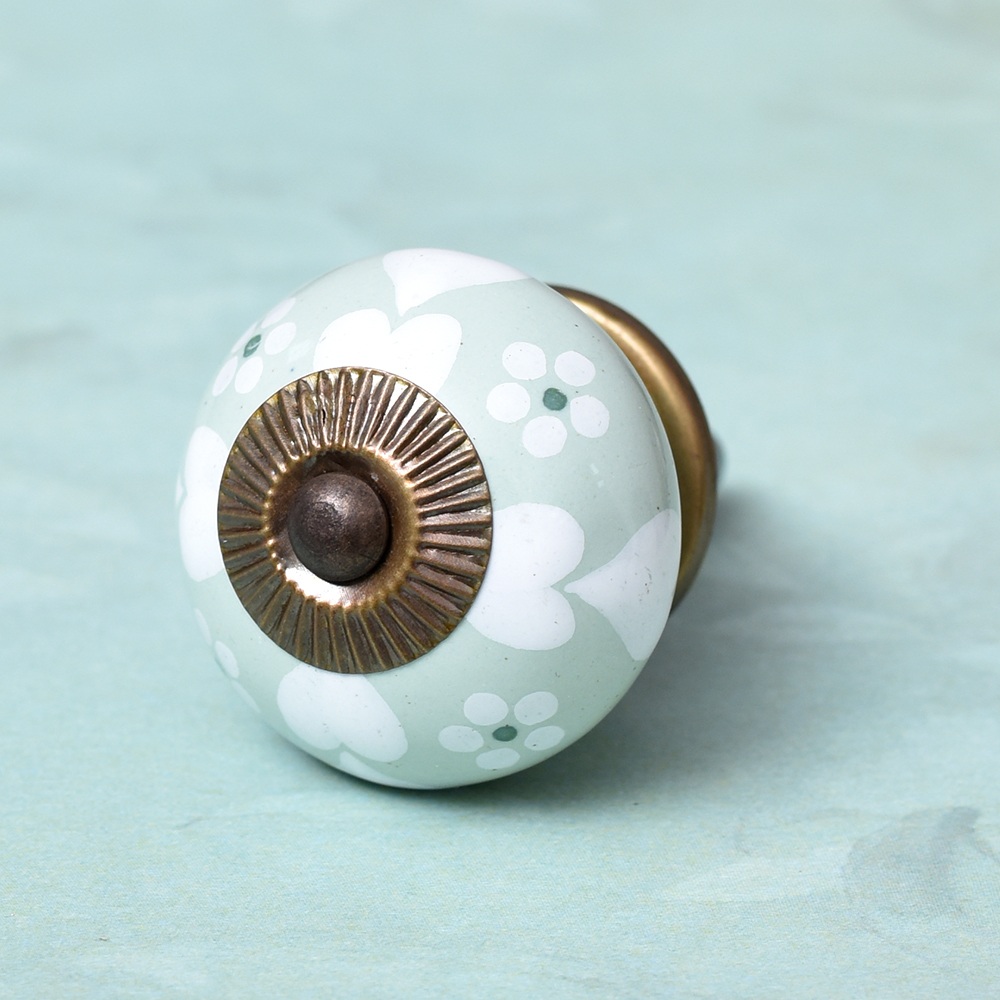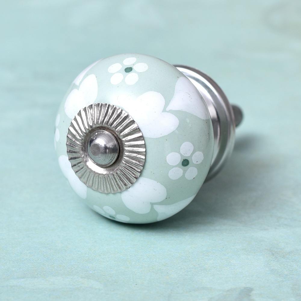 Sage Green Heart Ceramic Floral Wardrobe Knob Online