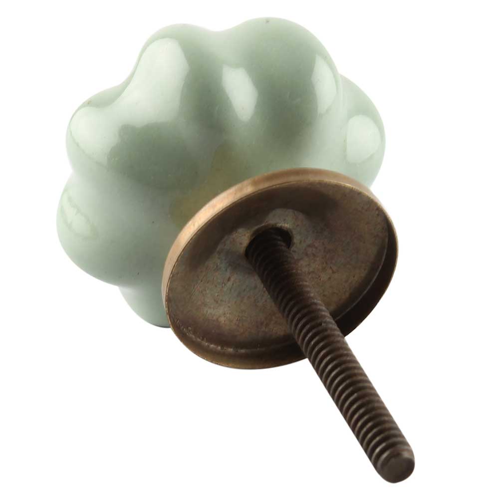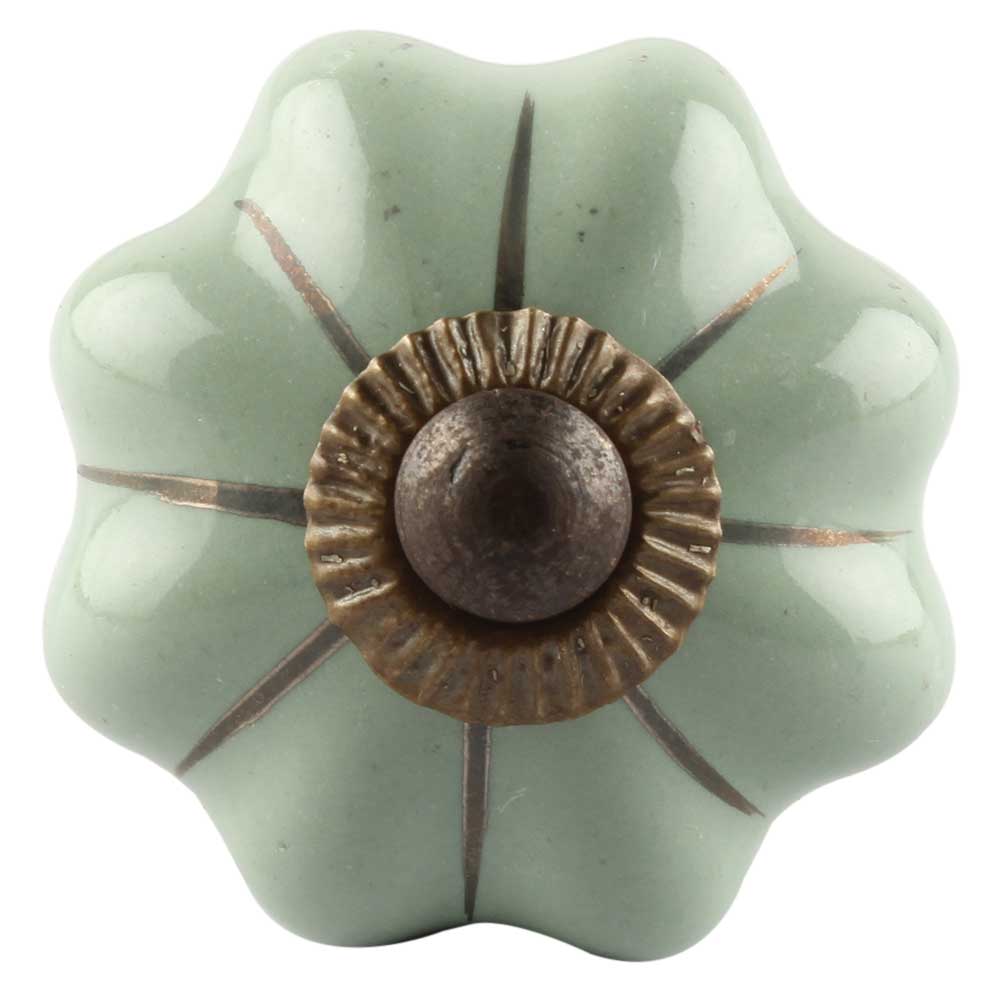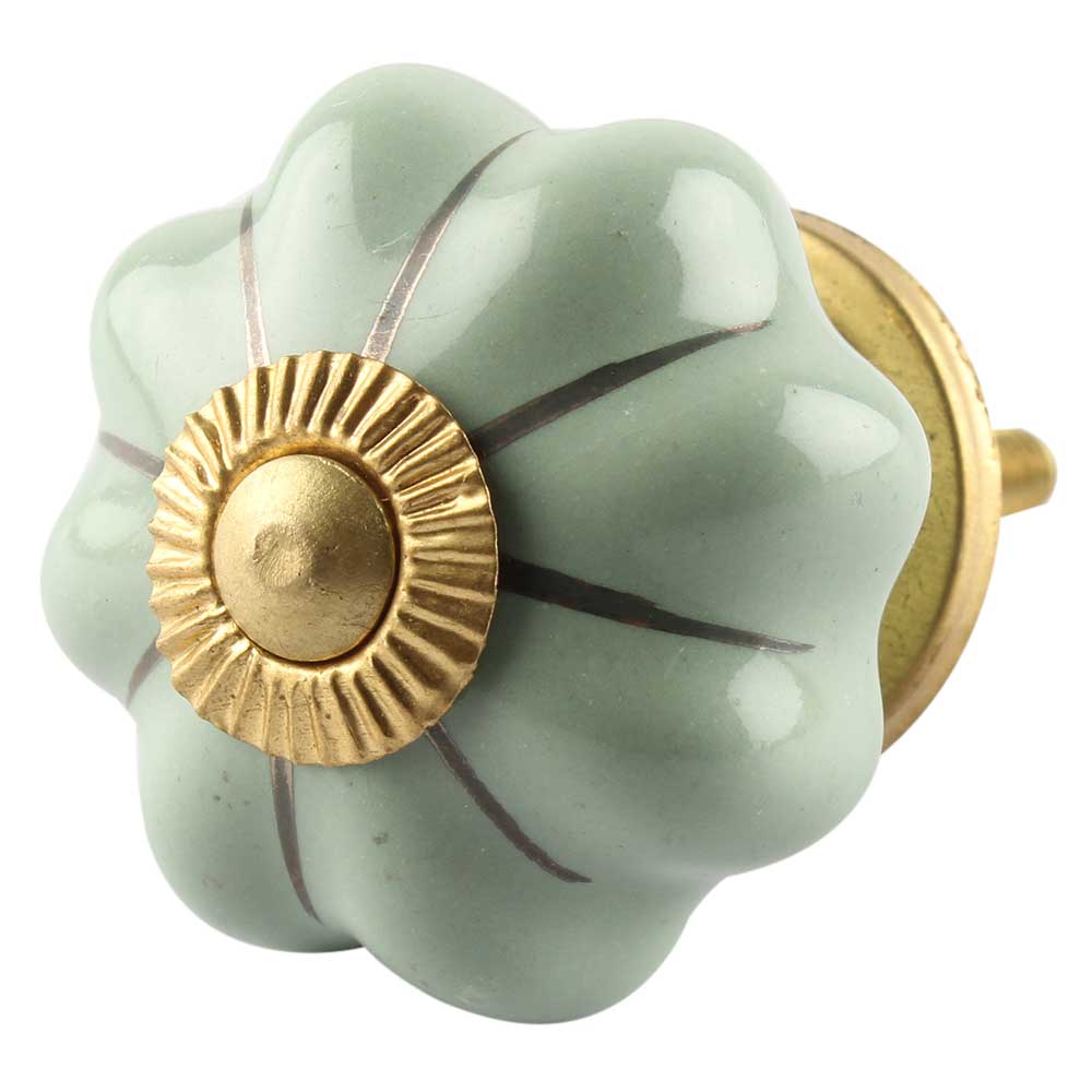 Sage Green Medium Ceramic Melon Knob in Silver Line