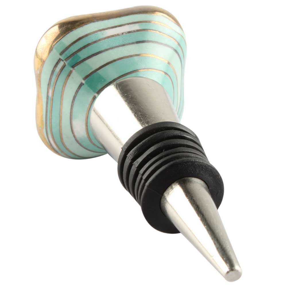 Sage Green Square Ceramic Wine Stopper Online. Zinc Alloy Wine Bottle Stopper with Attractive Jute Bag Packaging.