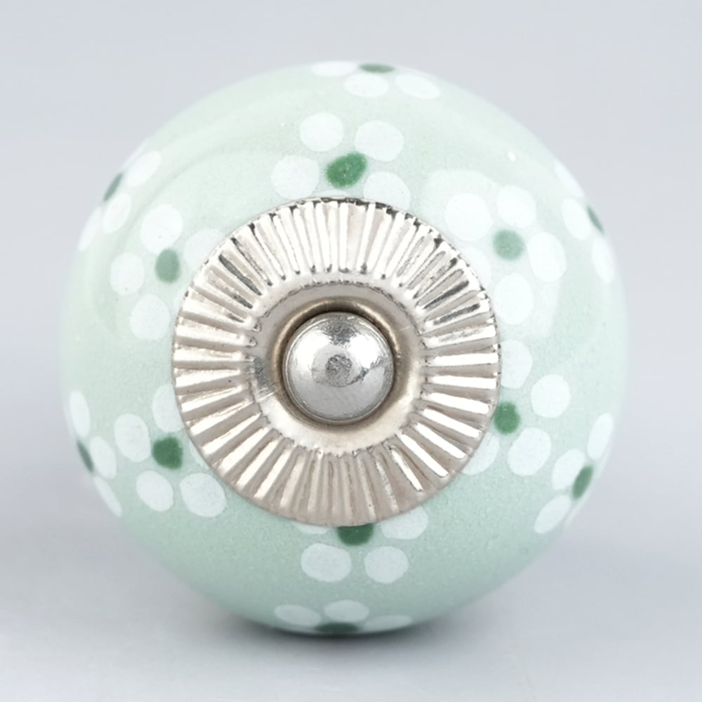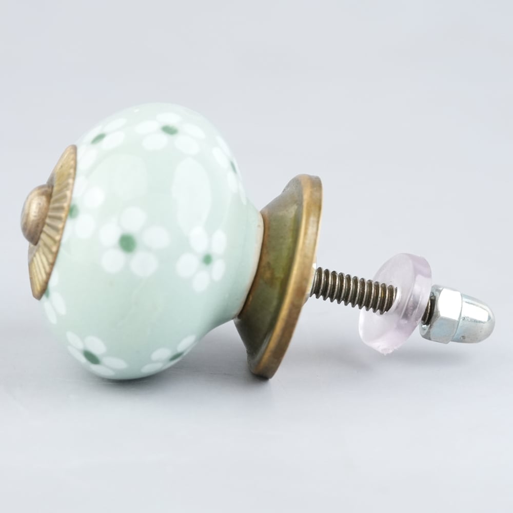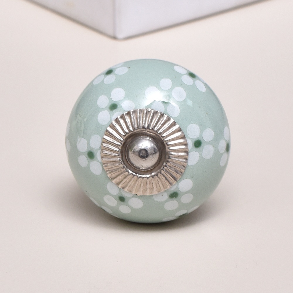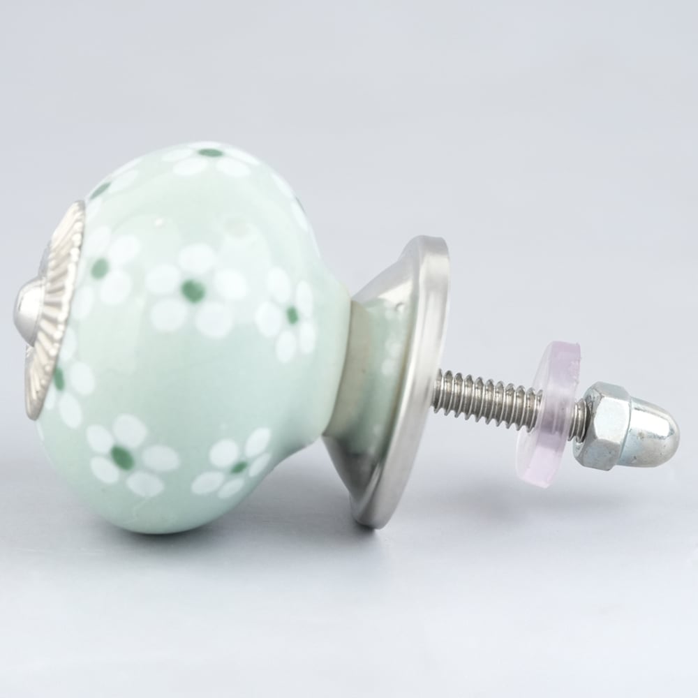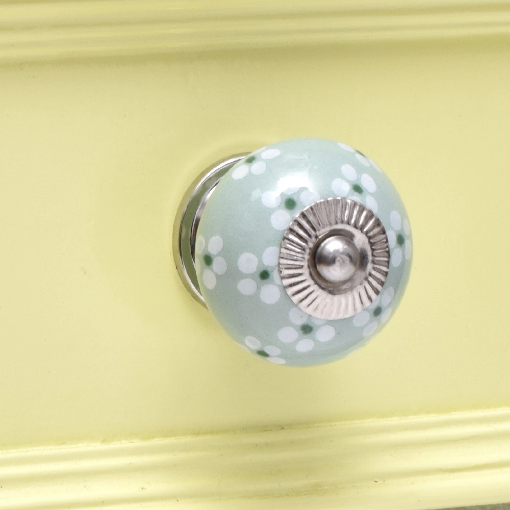 Sage Green Tiny Flower Ceramic Drawer Knob Online. Ideal for kitchen cabinets, kitchen drawers, dining room, bed room, chest drawers, dressing tables, almirah