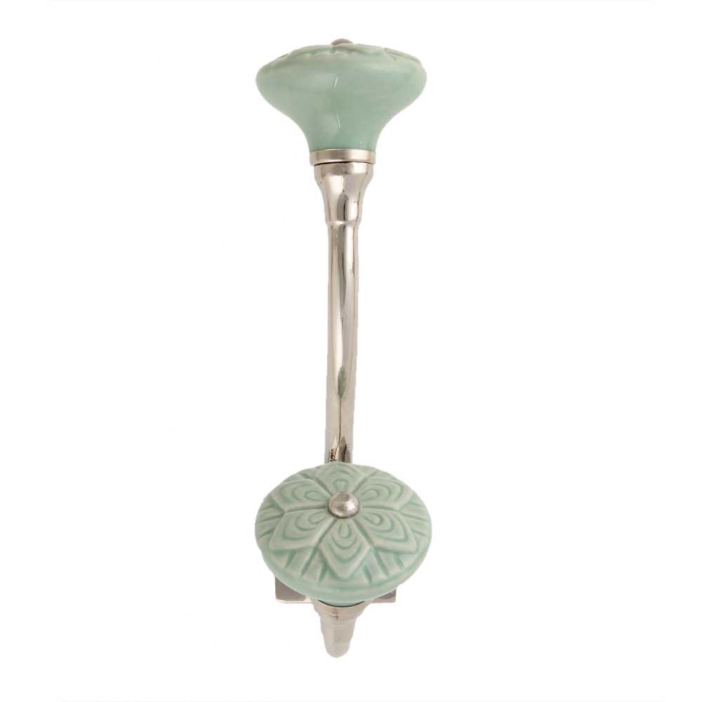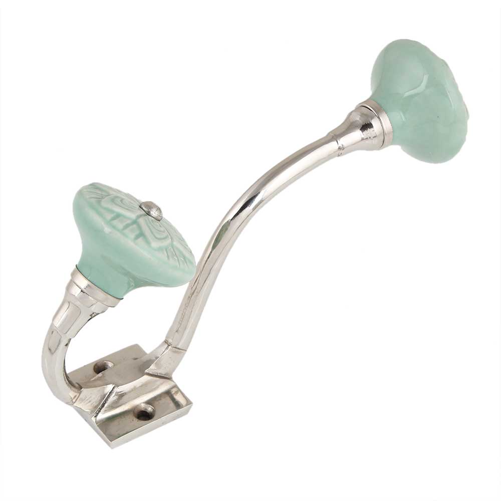 Material: Silver-Finished Iron Hook Finish: Glazed Sage Green Ceramic & Brushed Silver Iron Installation: Wall-mounted with concealed screws (hardware included)