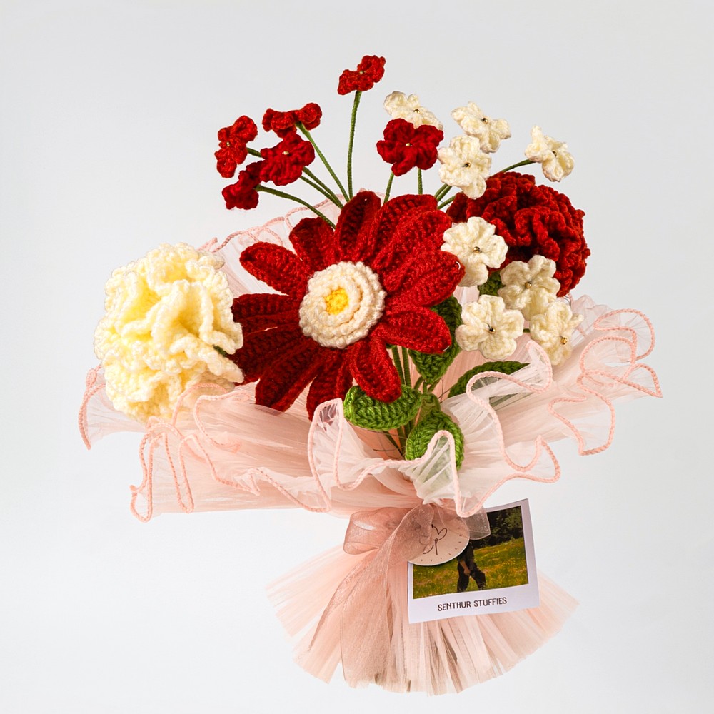 • Scarlet Crochet Bouquet With Cream Floral Accents