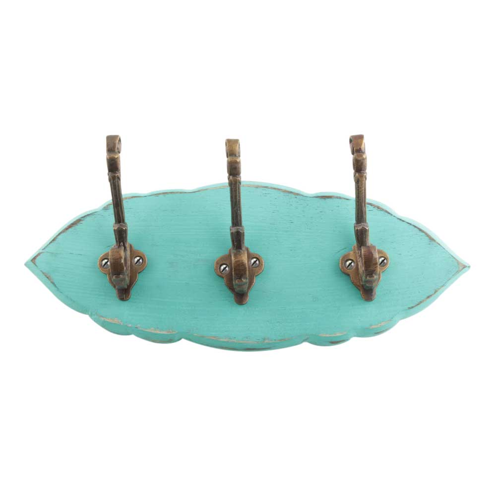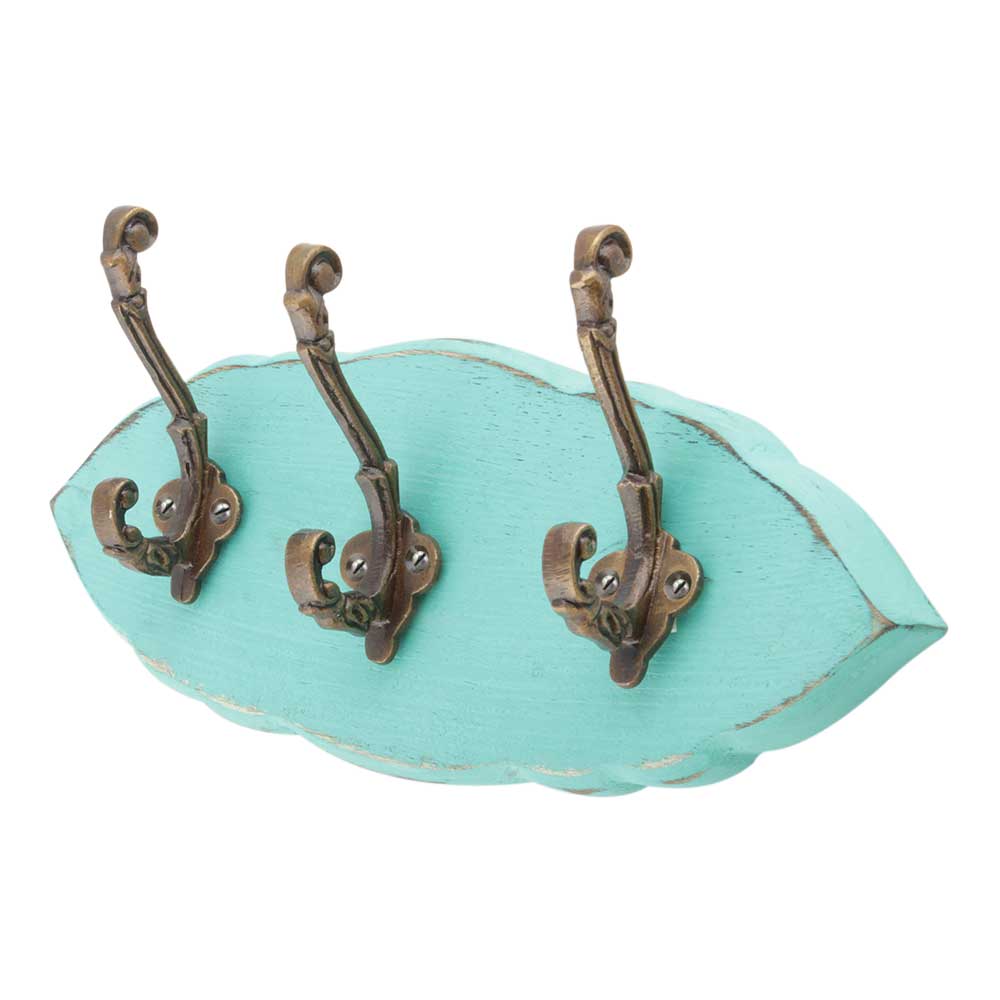 Sea Green Antique Small Wall Wooden Iron Hooks