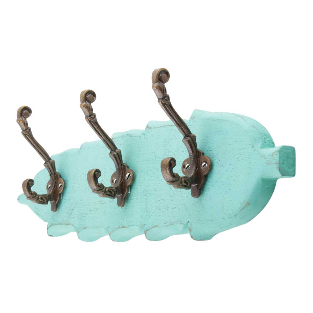 Sea Green Antique Small Wall Wooden Iron Hooks