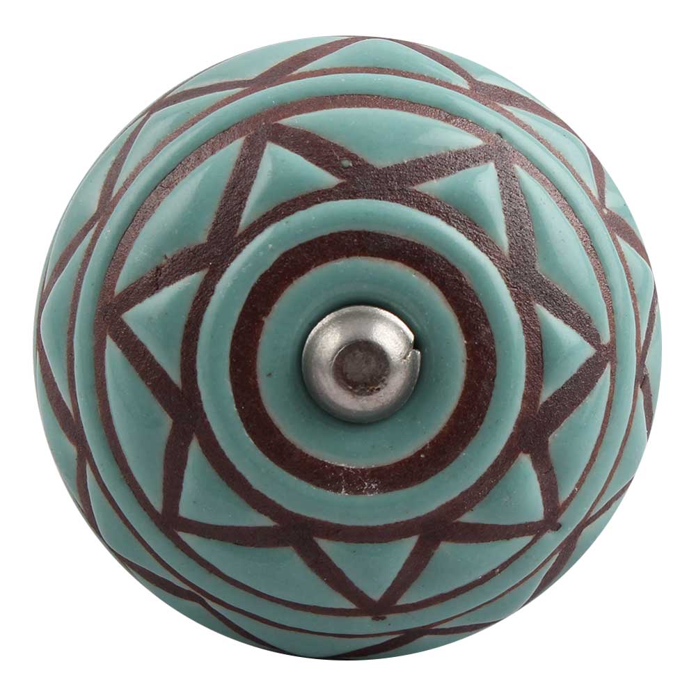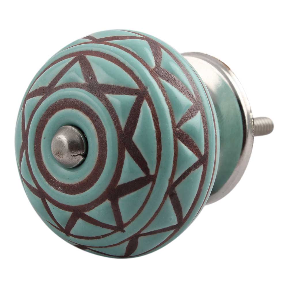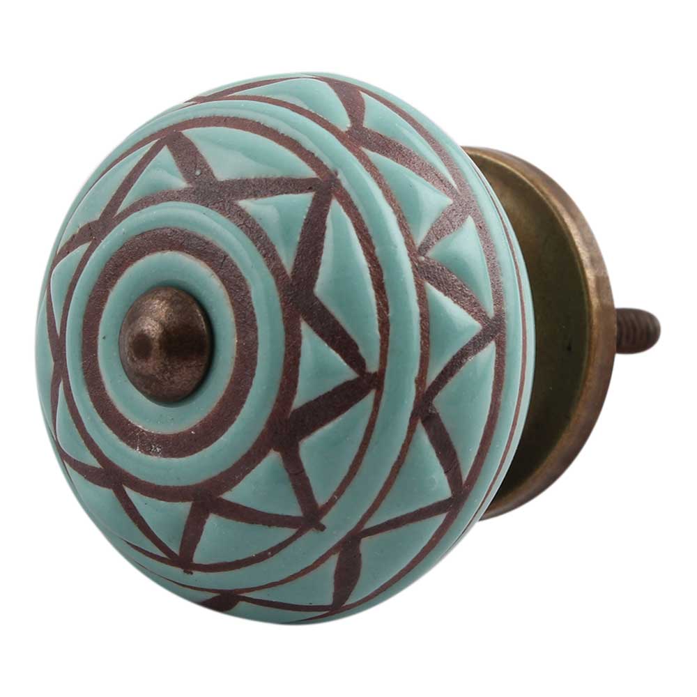 Sea Green Base Brown Pattern Etched Ceramic Drawer Knob