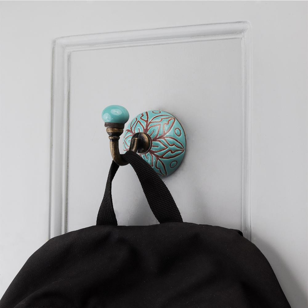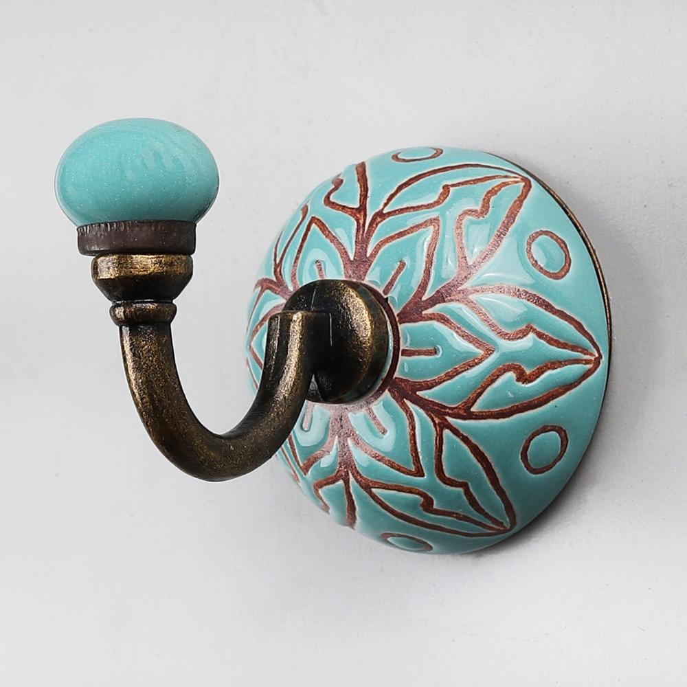 Sea Green Brown Amarylis Etched Ceramic Wall Hook