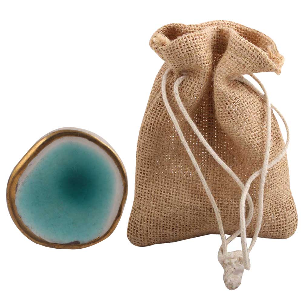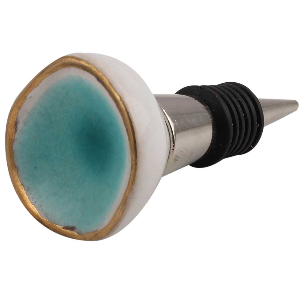 Sea Green Ceramic Wine Stopper.zinc alloy wine bottle stopper with attractive Jute Bag Packaging.