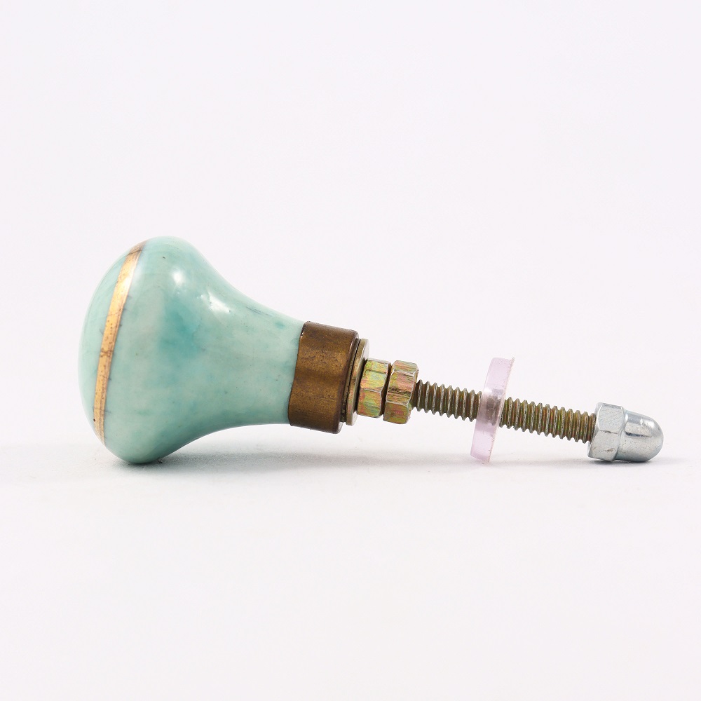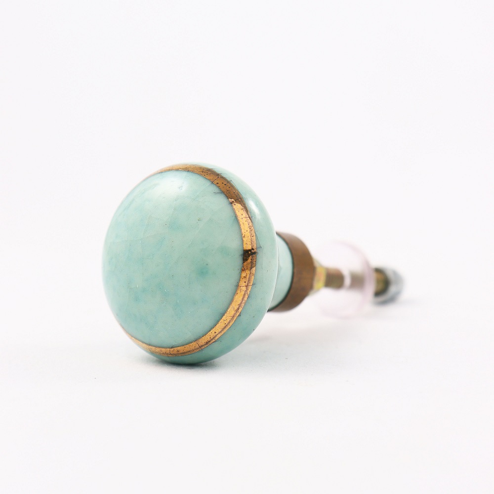 • Sea Green Crackle Ceramic Cabinet Knob With Gold Work