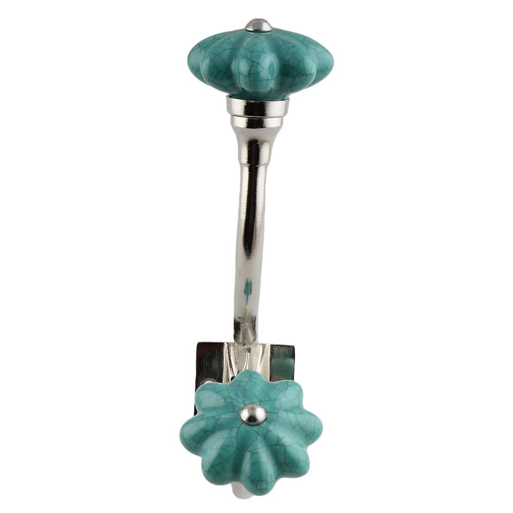 The Sea Green Crackle Ceramic Silver Iron Hook is a handcrafted wall hook that brings together functional storage and serene, coastal charm. Featuring a smooth, round ceramic knob finished in a sea green crackle glaze, it sits atop a sturdy brushed silver iron base. Designed with both beauty and utility in mind, this decorative wall hook offers a subtle splash of color and texture—perfect for elevating bathrooms, kitchens, or entryways with a touch of ocean-inspired elegance.