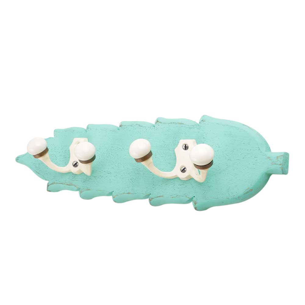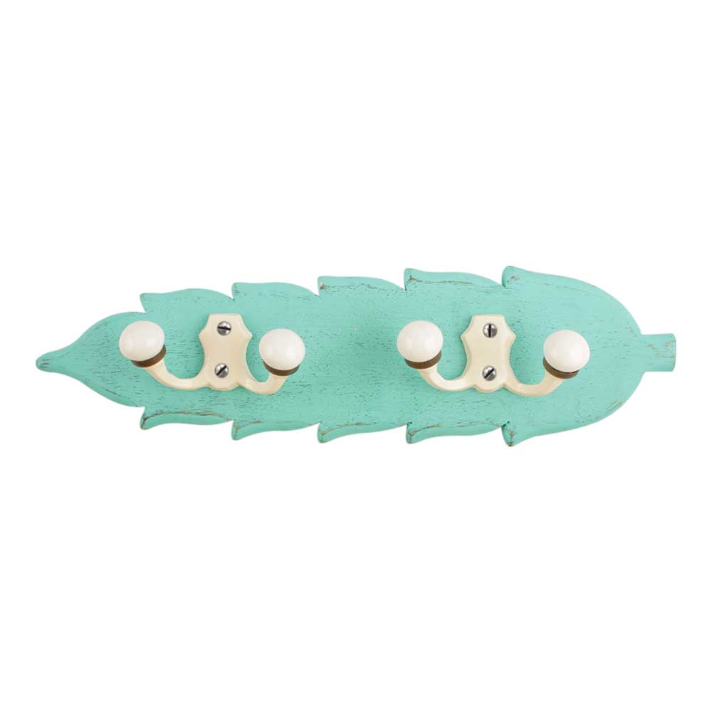 Sea Green Cream Double Loop Ceramic Iron Wooden Hooks. A Perfect Complement to the Soft Tone of the Wood are these White Traditional Hat & Coat Hook Made of Genuine Porcelain and Brass. It can be use to Hang Jewellery, Leashes, Towels, Scarves, Light Weight Sweaters, Caps Etc.