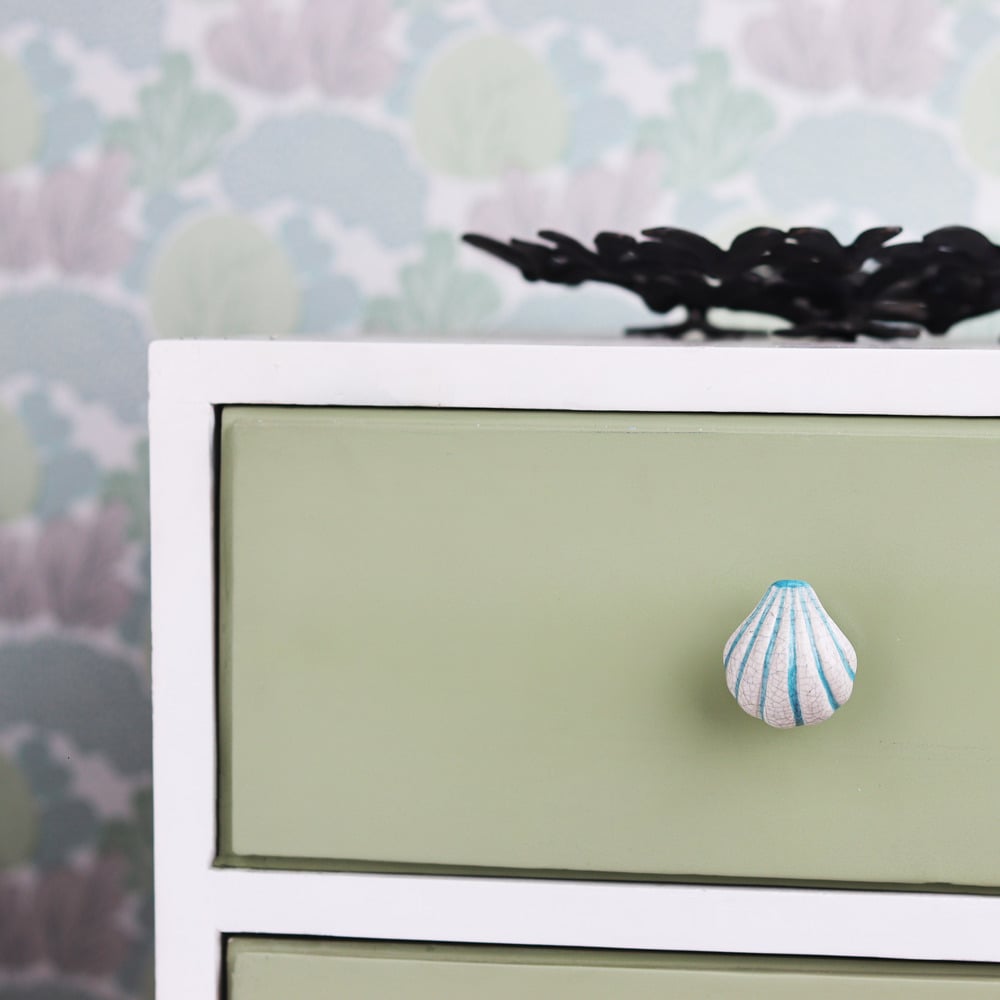 With its gentle sea green and cream color scheme, this dresser knob is ideal for coastal, nautical, or beach-themed spaces. It brings the tranquility and beauty of the sea into your home, making it a wonderful choice for bedroom furniture, bathrooms, or any area where you wish to create a calm, relaxed atmosphere.