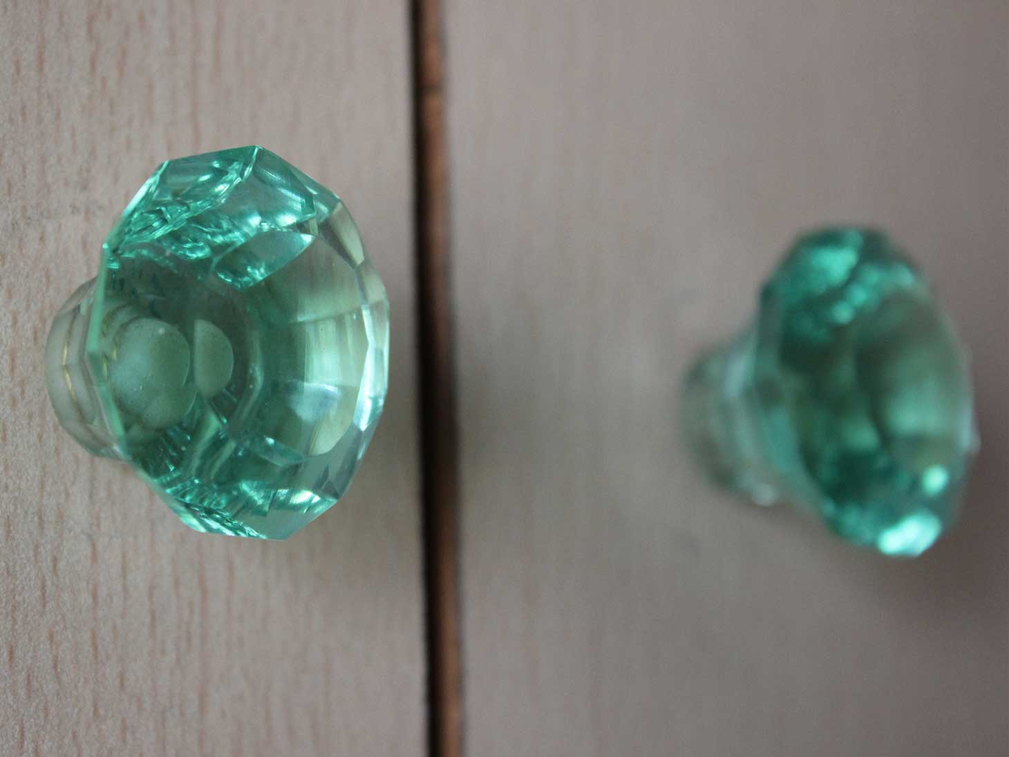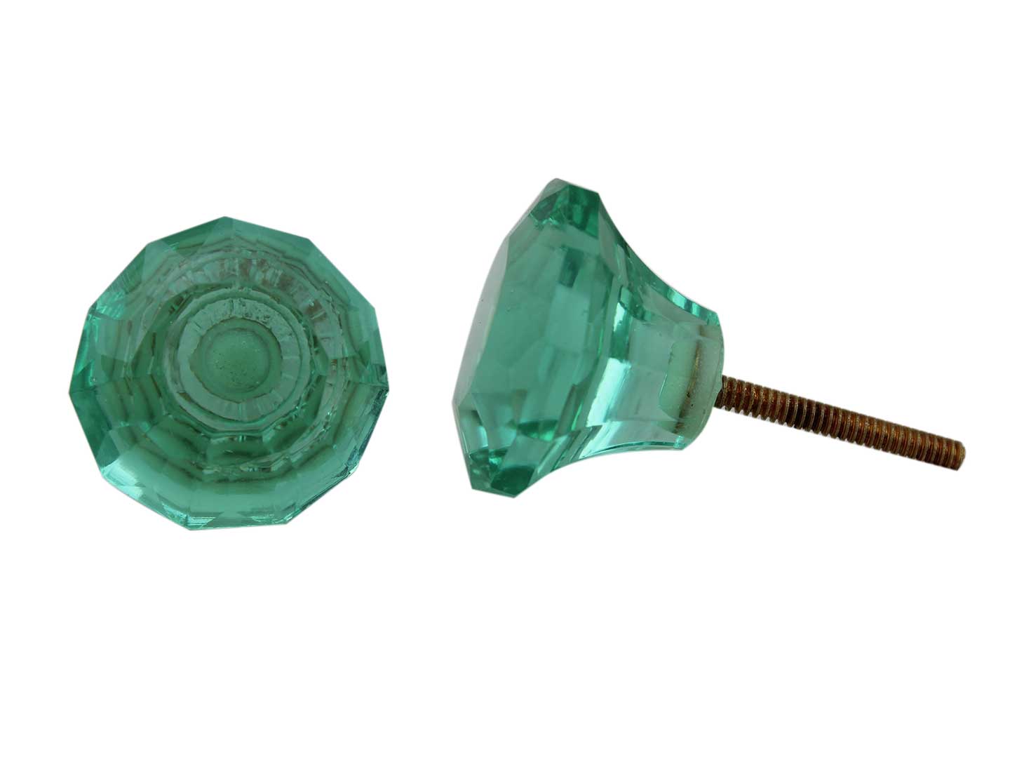 Sea Green Diamond Glass Knobs, Small. Ideal for Drawer, Dresser, Cabinet, Wardrobe, Cupboard and almirah