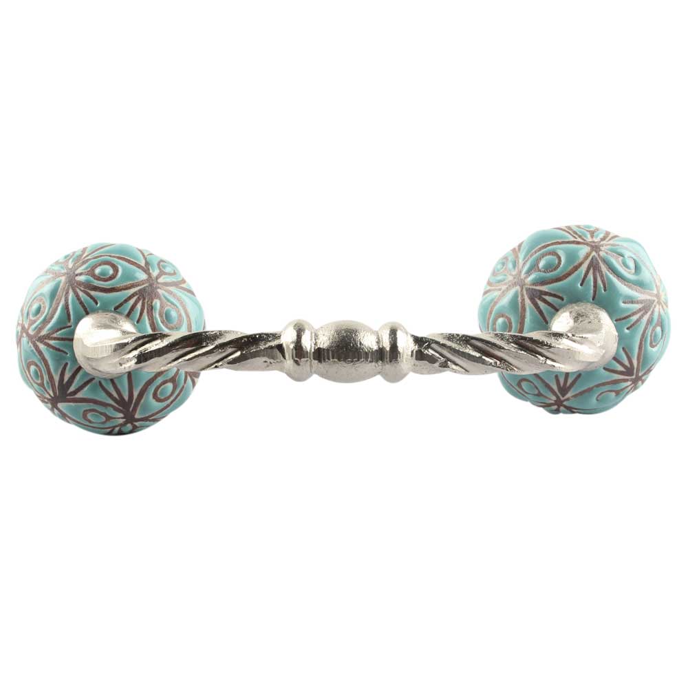 Sea Green Etched Ceramic Cut Bridge Handle. Ideal for Drawer, Dresser, Cabinet, Wardrobe, Cupboard and Almirah etc.