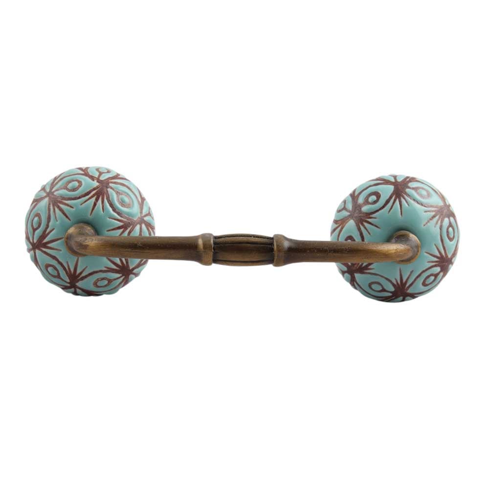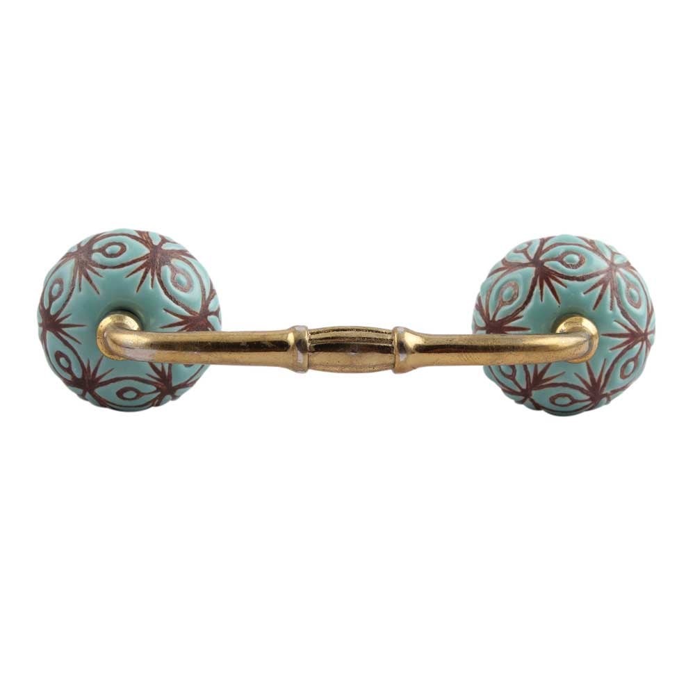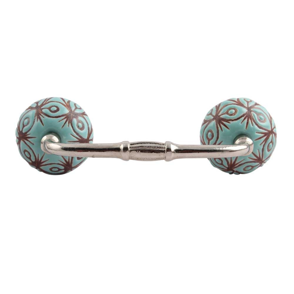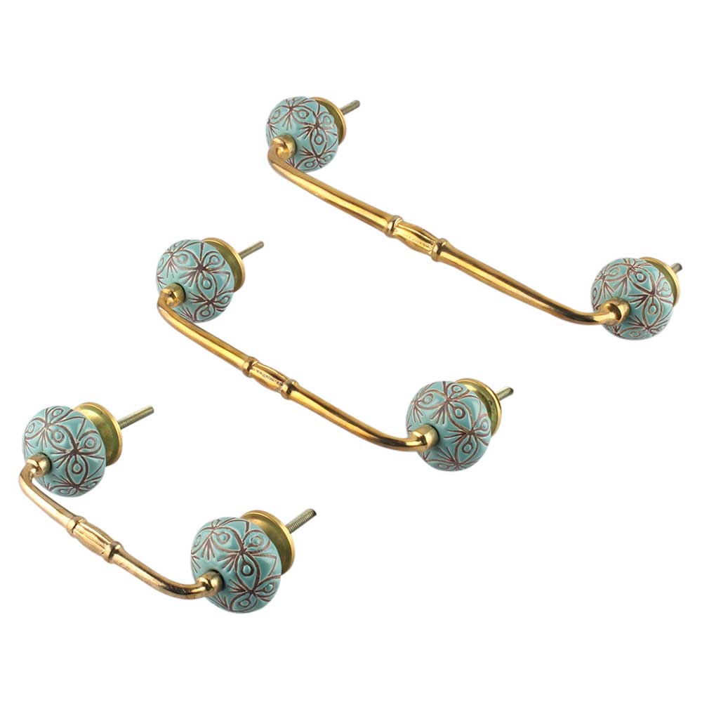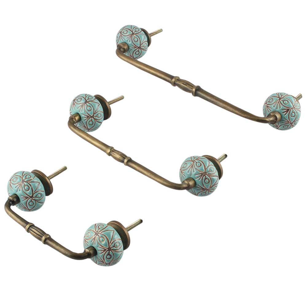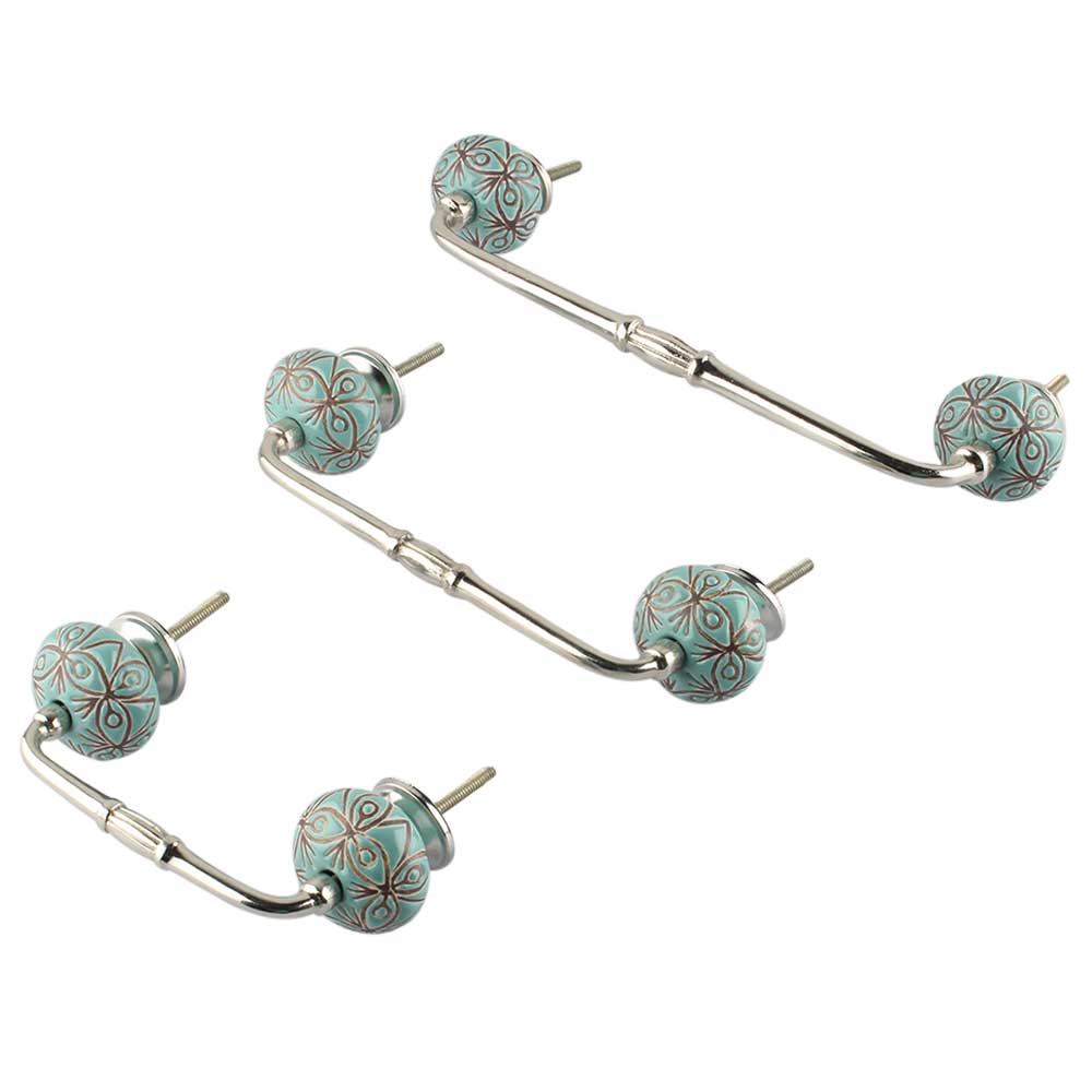 Sea Green Etched Ceramic Floral Bridge Handle. Ideal for Drawer, Dresser, Cabinet, Wardrobe, Cupboard and Almirah.