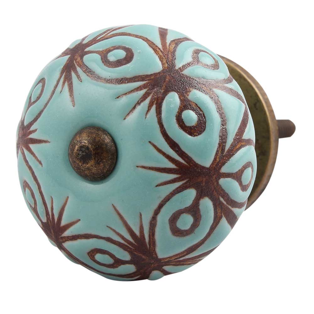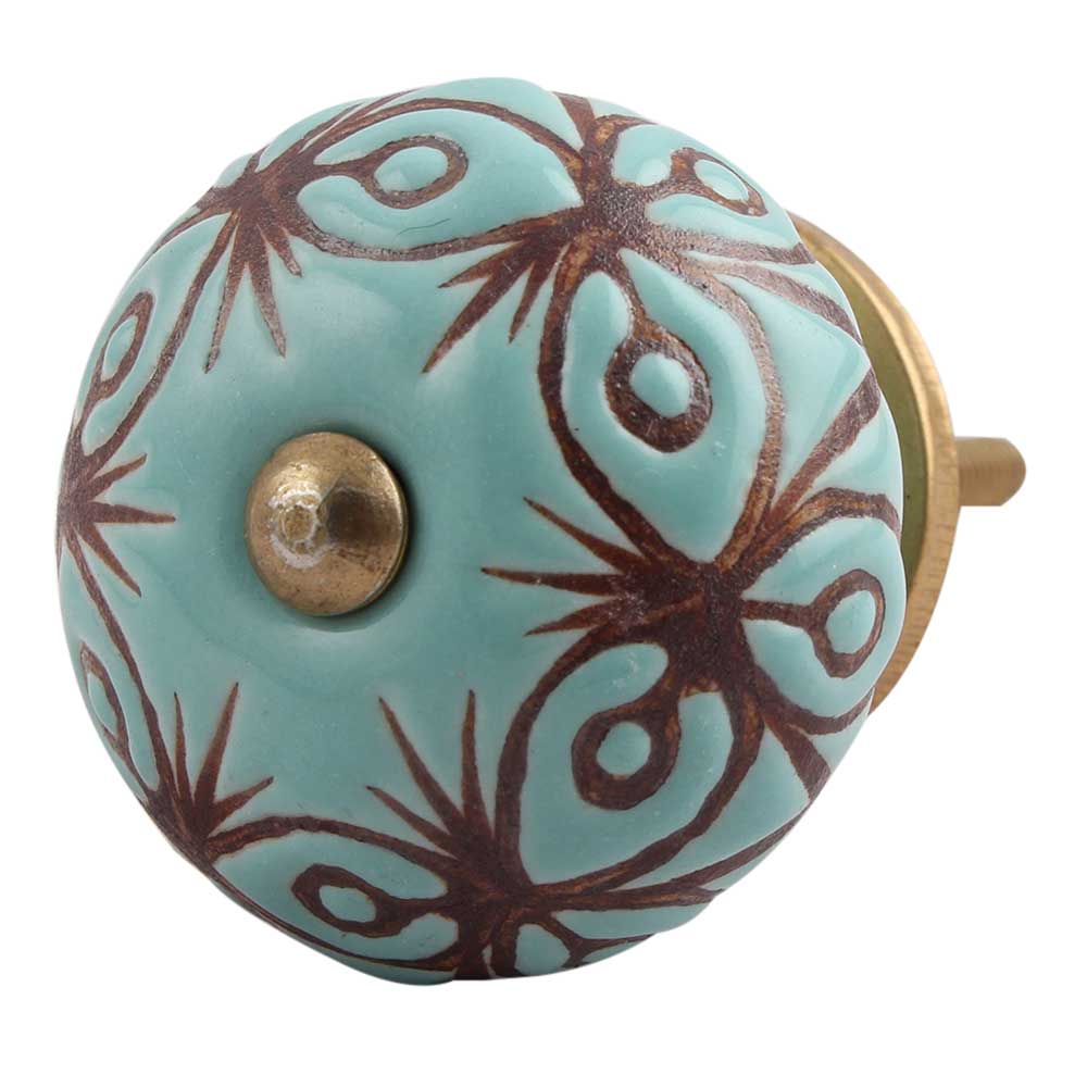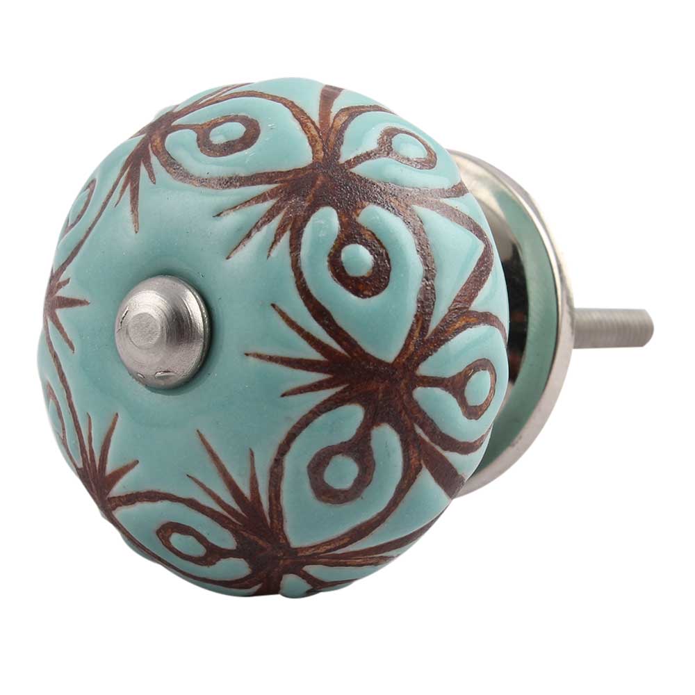 Sea Green Etched Ceramic Floral Cabinet Knob Online
