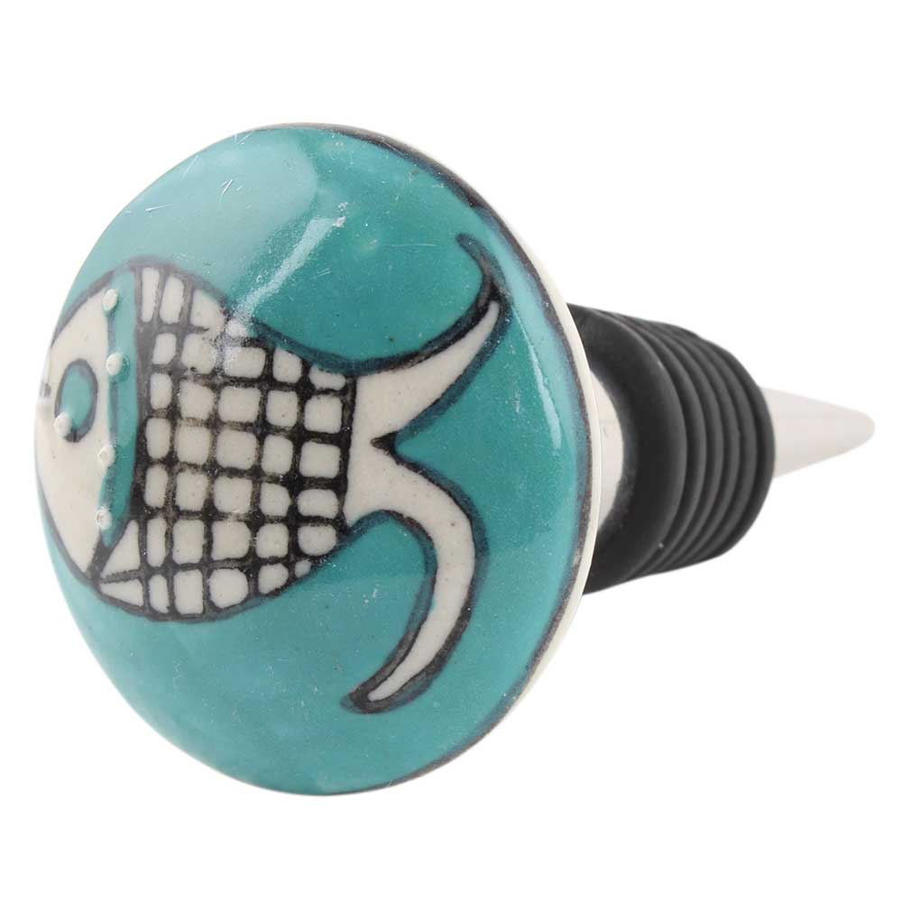 Sea Green Fish Ceramic Wine Bottle Stopper