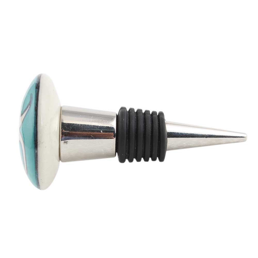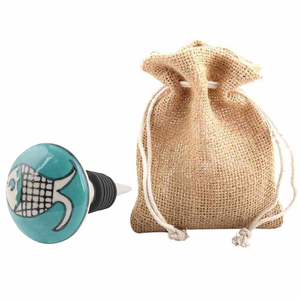 Sea Green Fish Ceramic Wine Bottle Stopper. Zinc Alloy Wine Bottle Stopper with Attractive Jute Bag Packaging.