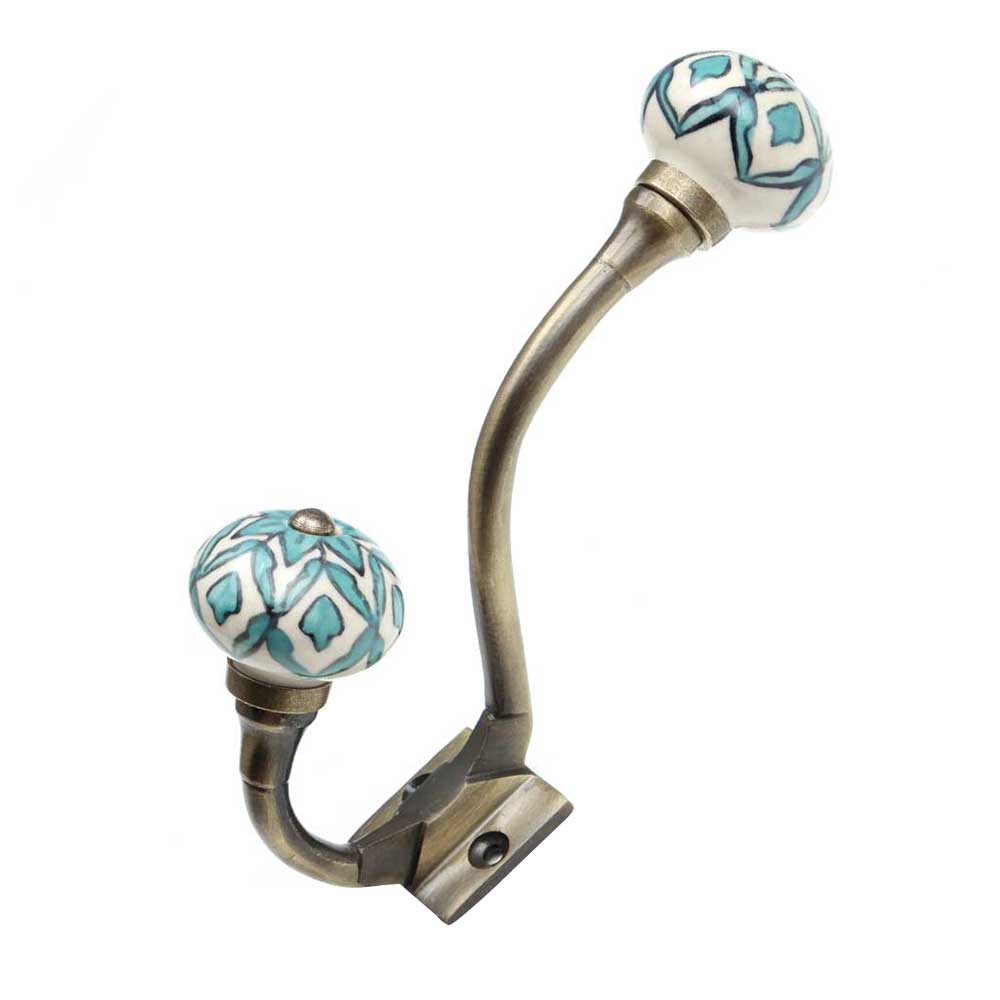 Sea Green Flower Ceramic Antique Iron Hook. When Put on Wall or Cabinet It Gives A Sturdy Look. This Hook is Strong Enough to Hold Your Cloths, Keys, Tea Cups, Coffee Mugs, Hand Towels etc.