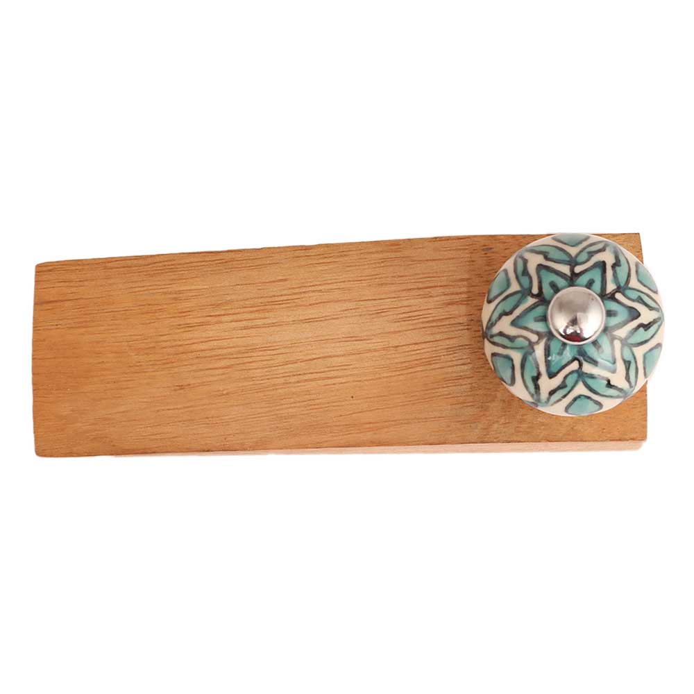 Sea Green Flower Ceramic Wooden Door Stopper.Wooden Door Stopper with a Ceramic Knob to Carry it Easily. This Wooden Door Stopper has Glue Dots under it to Ensure that it does not Slip. It is Handmade by the Craftsmen of India and this Innovative Door Stopper won't Disappoint You.