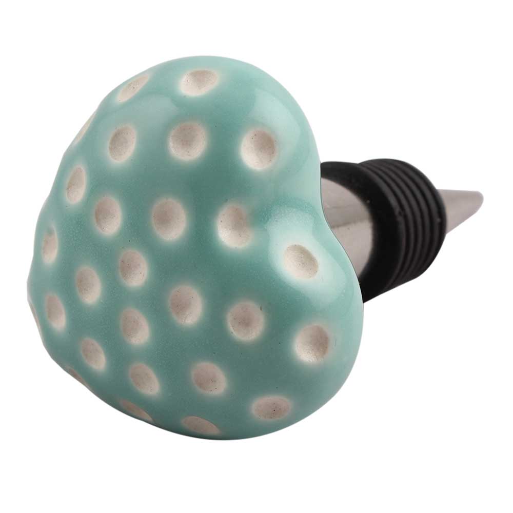 Crafted from high-quality ceramic, this wine stopper is both durable and decorative. The smooth ceramic finish is paired with an elegant sea green color that’s complemented by a delicately etched heart design. It’s not just a functional tool but a beautiful accent for any wine bottle, whether you're hosting a party or simply enjoying a glass at home.