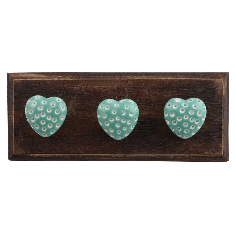 Sea Green Heart Etched Ceramic Wooden Hooks