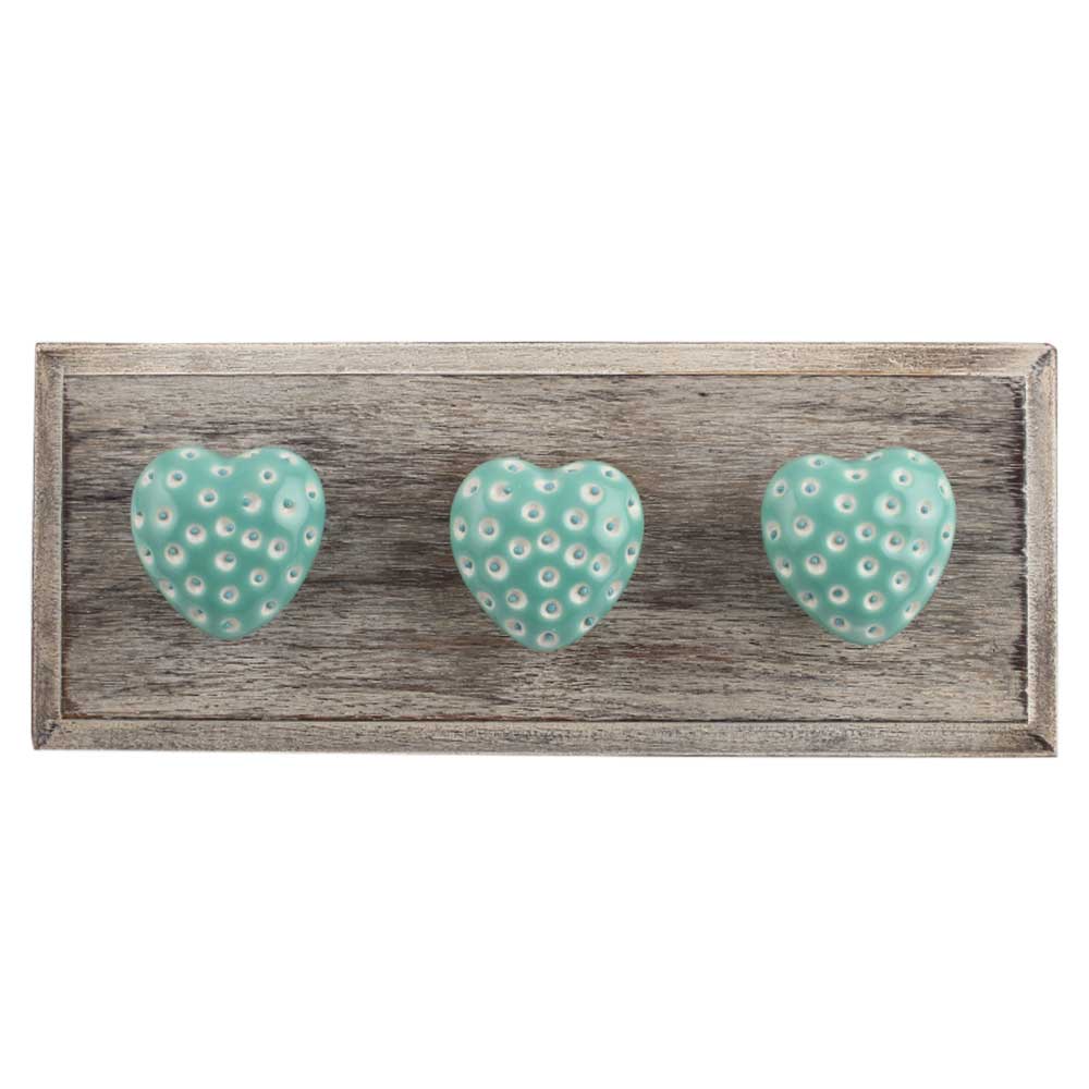 Sea Green Heart Etched Ceramic Wooden Hooks