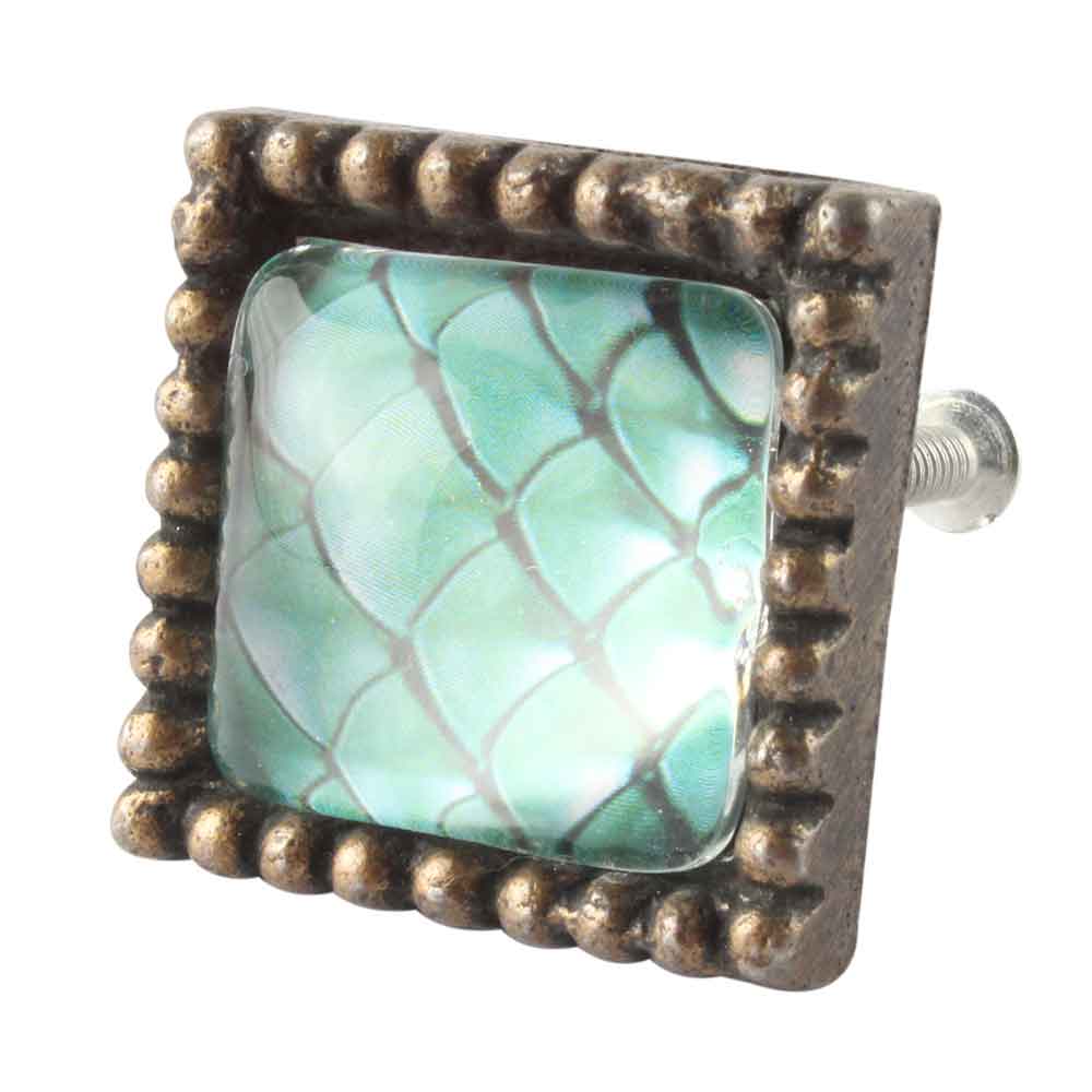 Sea Green Inside Pattern Square Iron Glass Dresser knob