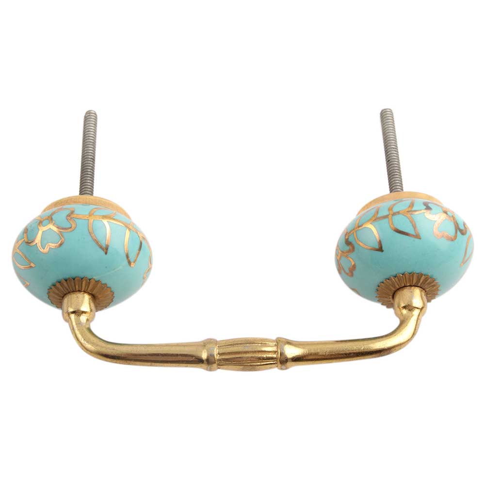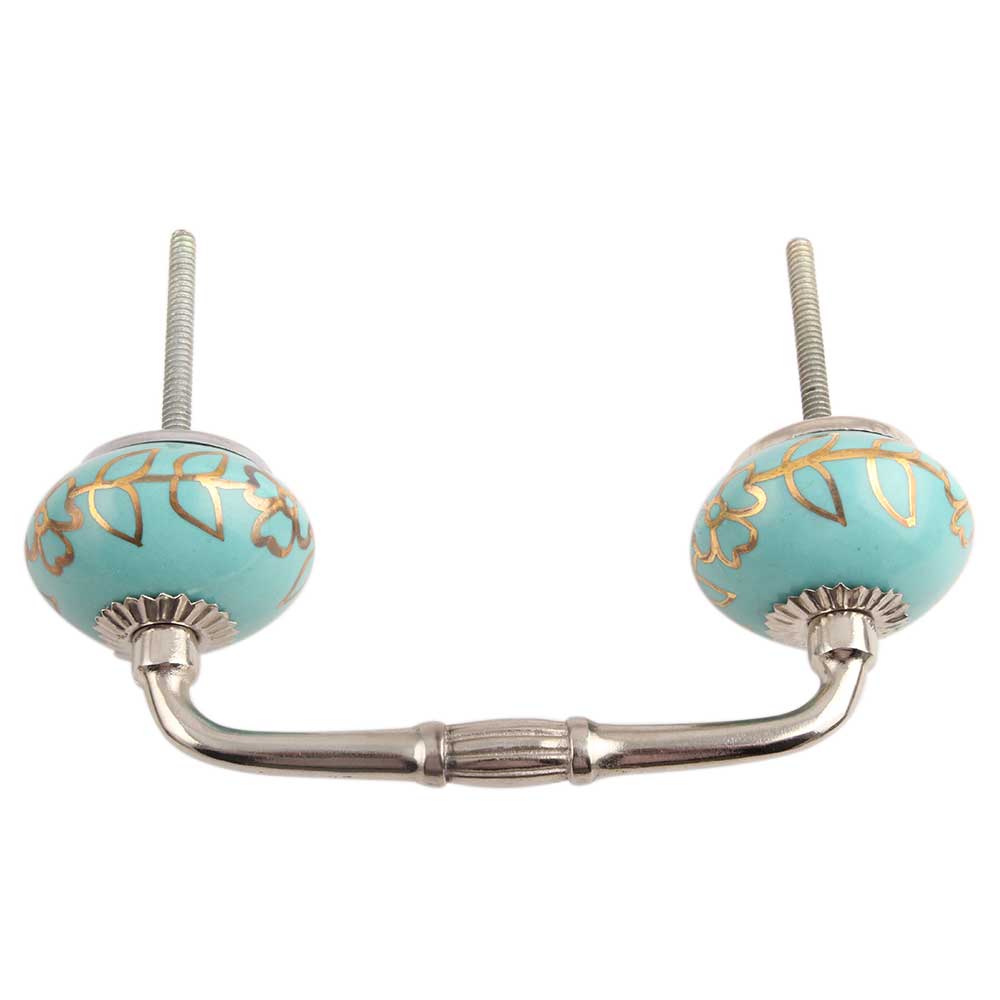 Sea Green Leaf Ceramic Bridge Handle. Ideal for Drawer, Dresser, Cabinet, Wardrobe, Cupboard and Almirah.