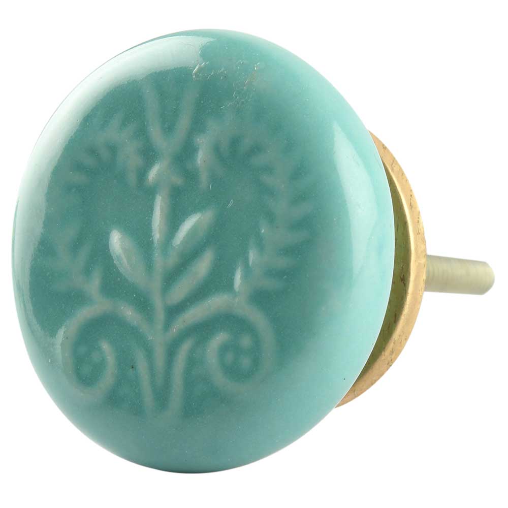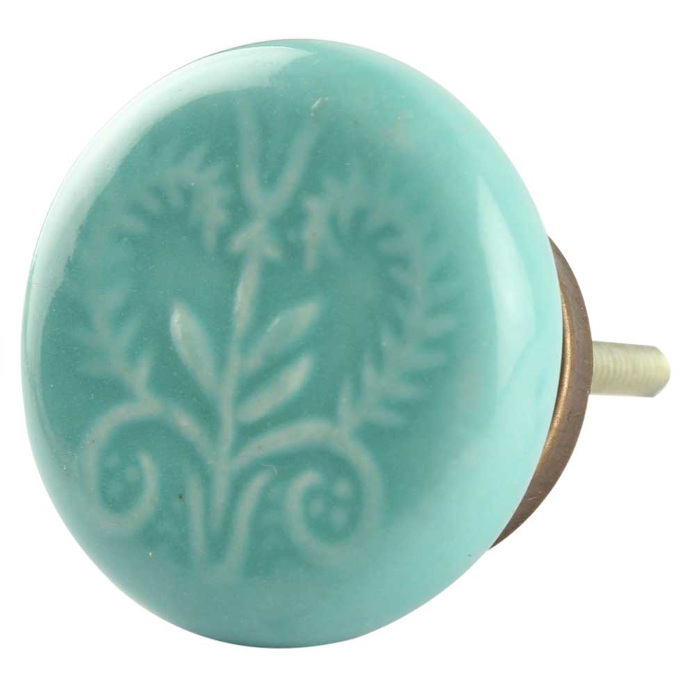Sea Green Leaf Ceramic Flat Drawer Knob Online