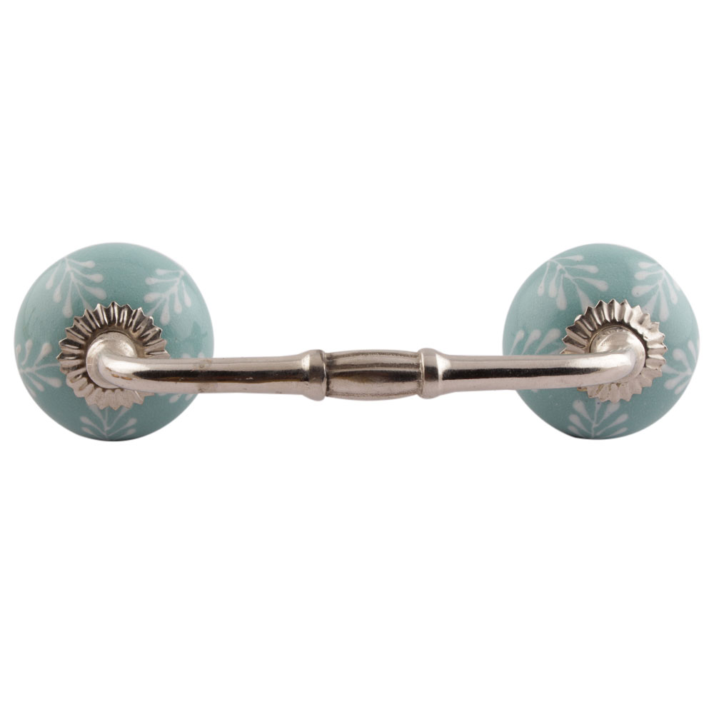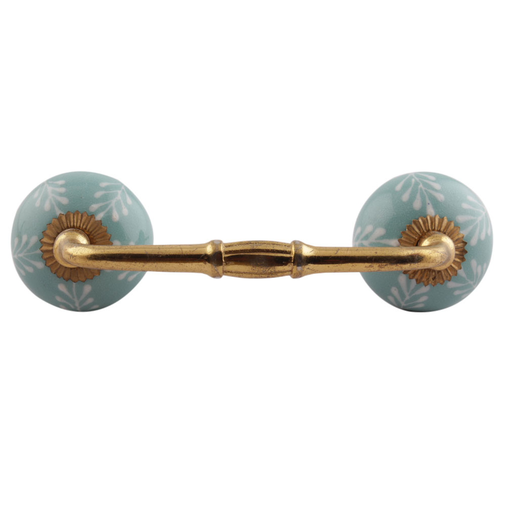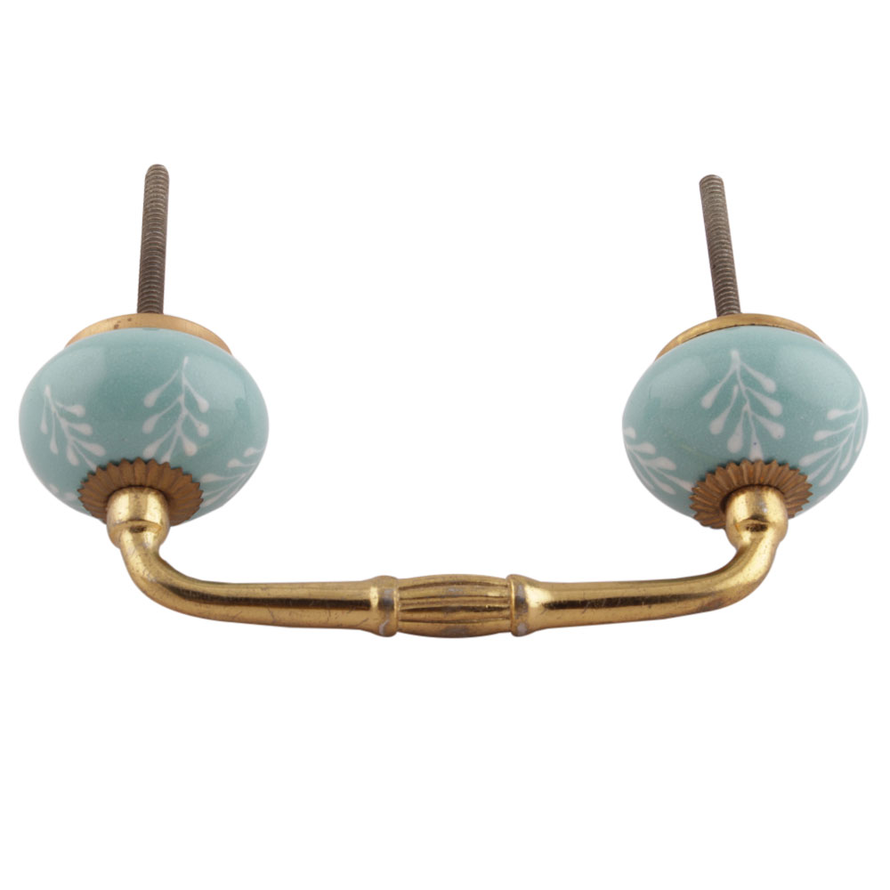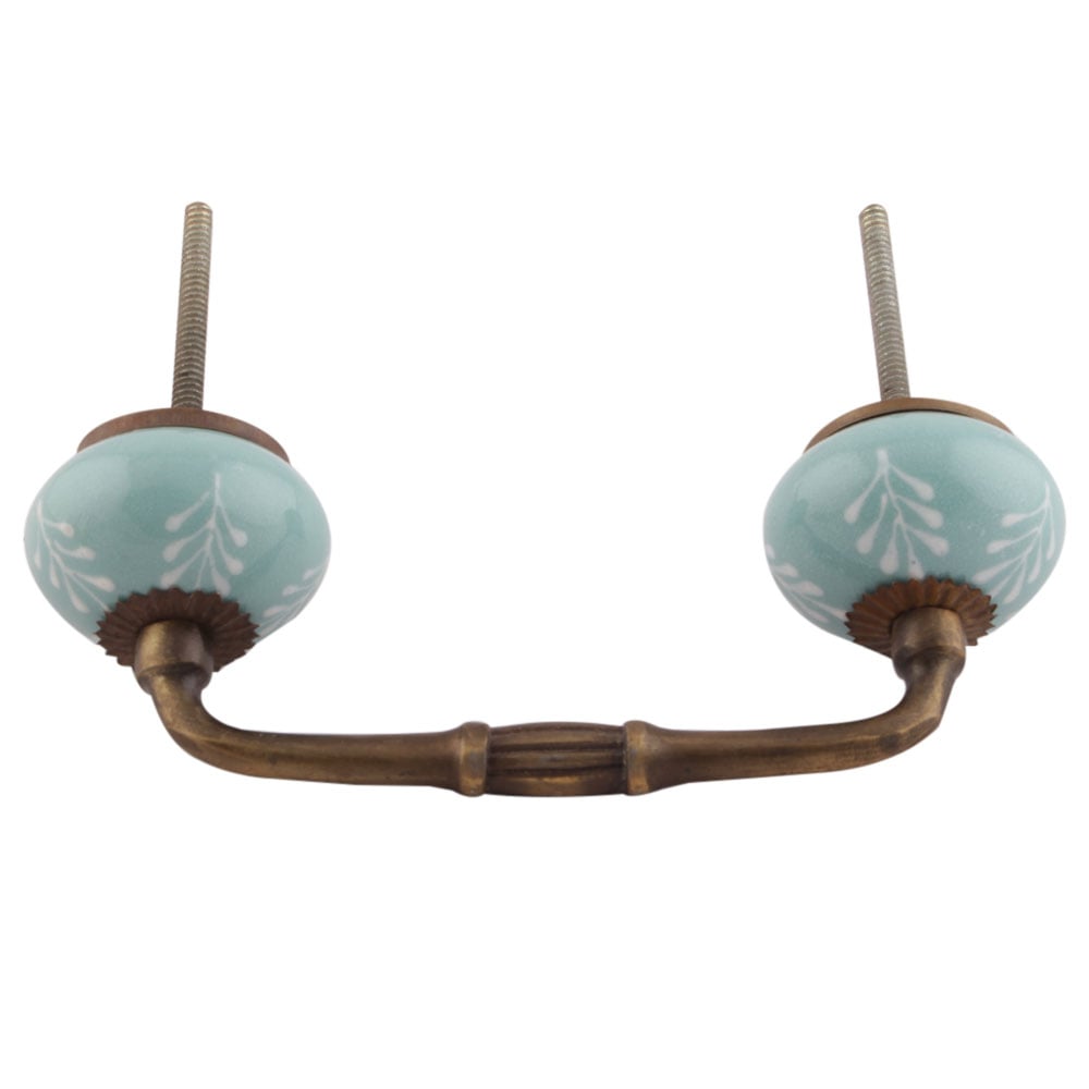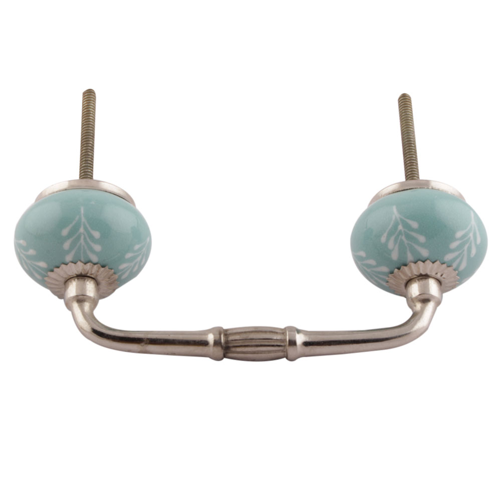Sea Green Leaf Floral Ceramic Bridge Handles
