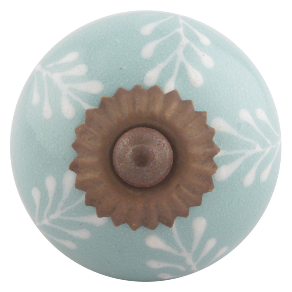 Sea Green Leaf Floral Ceramic Drawer Knobs