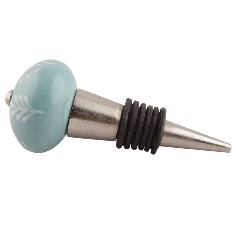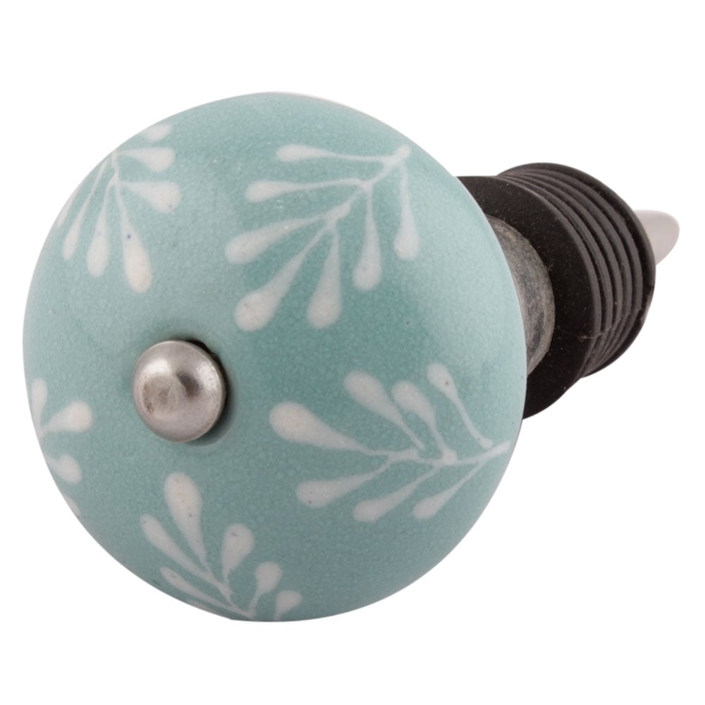 Sea Green Leaf Floral Ceramic Wine Stopper