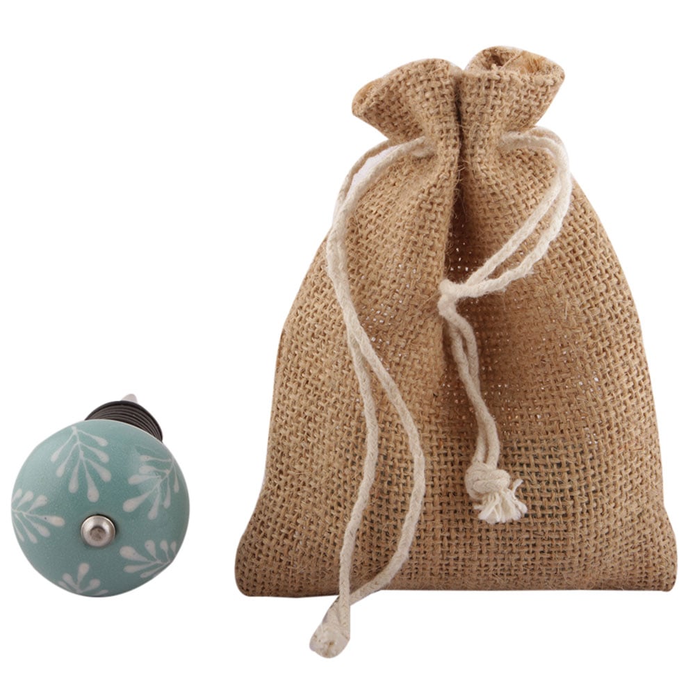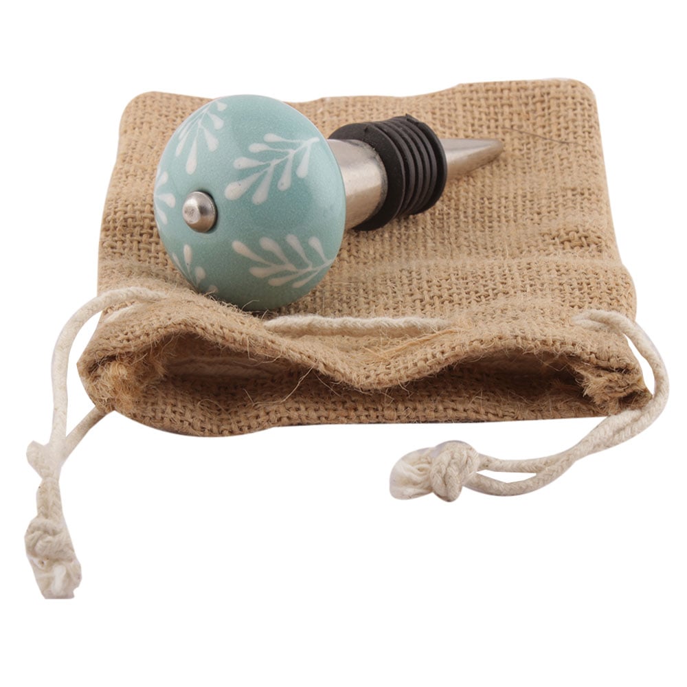 Sea Green Leaf Floral Ceramic Wine Stopper. Zinc Alloy Wine Bottle Stopper with Attractive Jute Bag Packaging.