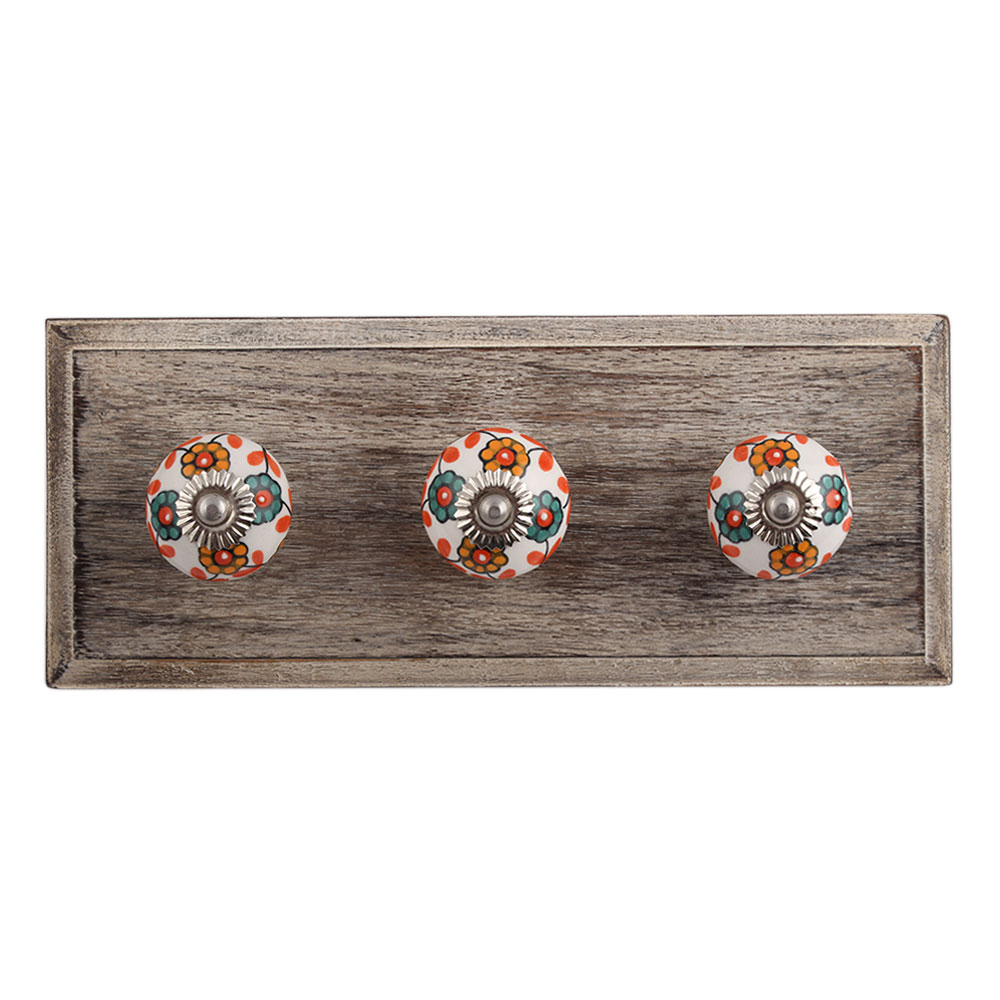 Sea Green Mustard Sunflower Ceramic Wooden Hook. A Perfect Complement to the Soft Tone of the Wood are these White Traditional Hat & Coat Hook Made of Genuine Porcelain and Brass. It can be use to Hang Jewellery, Leashes, Towels, Scarves, Light Weight Sweaters, Caps Etc.