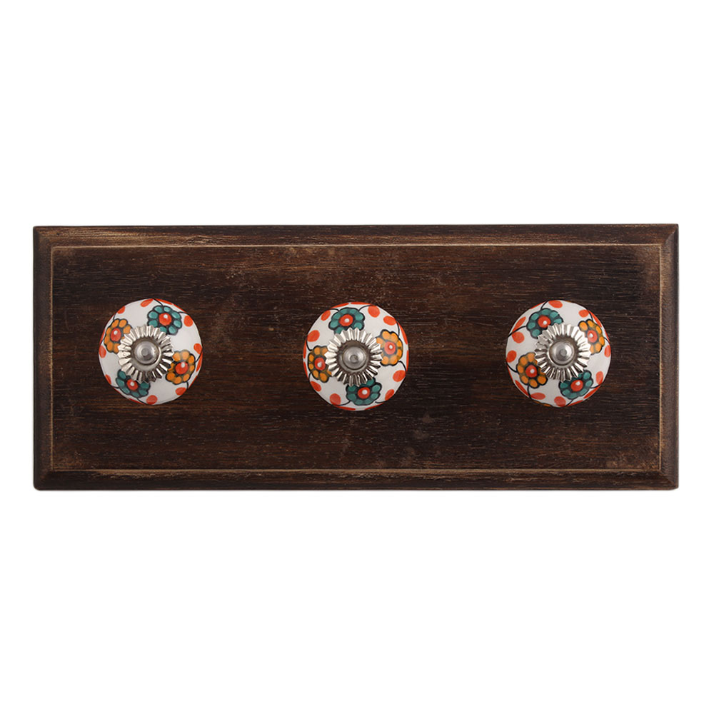 Sea Green Mustard Sunflower Ceramic Wooden Hook. A Perfect Complement to the Soft Tone of the Wood are these White Traditional Hat & Coat Hook Made of Genuine Porcelain and Brass. It can be use to Hang Jewellery, Leashes, Towels, Scarves, Light Weight Sweaters, Caps Etc.
