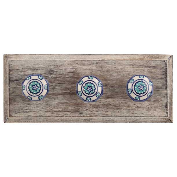 Sea Green Octagon Ceramic Wooden Hook. A Perfect Complement to the Soft Tone of the Wood are these White Traditional Hat & Coat Hook Made of Genuine Porcelain and Brass. It can be use to Hang Jewellery, Leashes, Towels, Scarves, Light Weight Sweaters, Caps Etc.