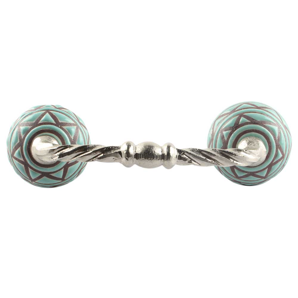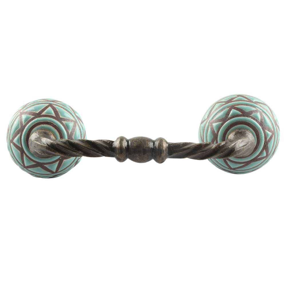 Sea Green Pattern Etched Ceramic Cut Bridge Handle